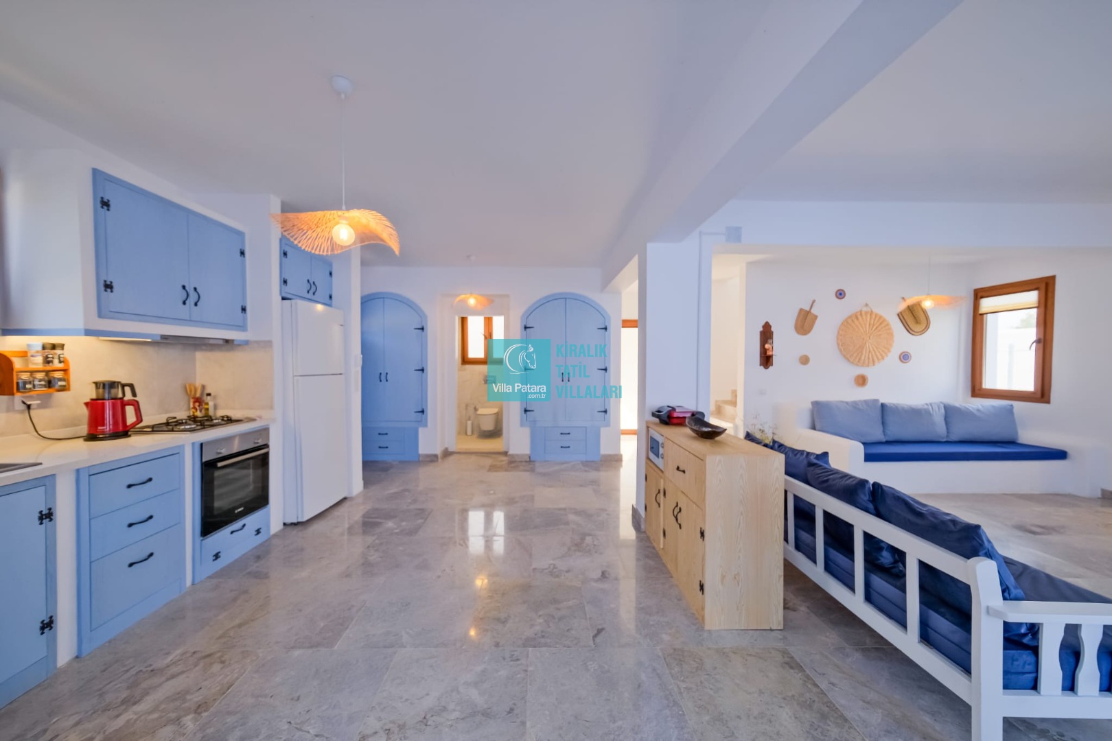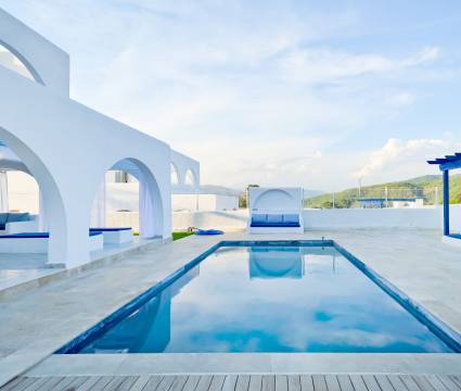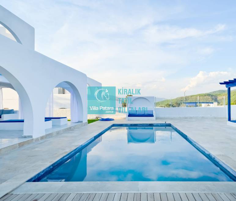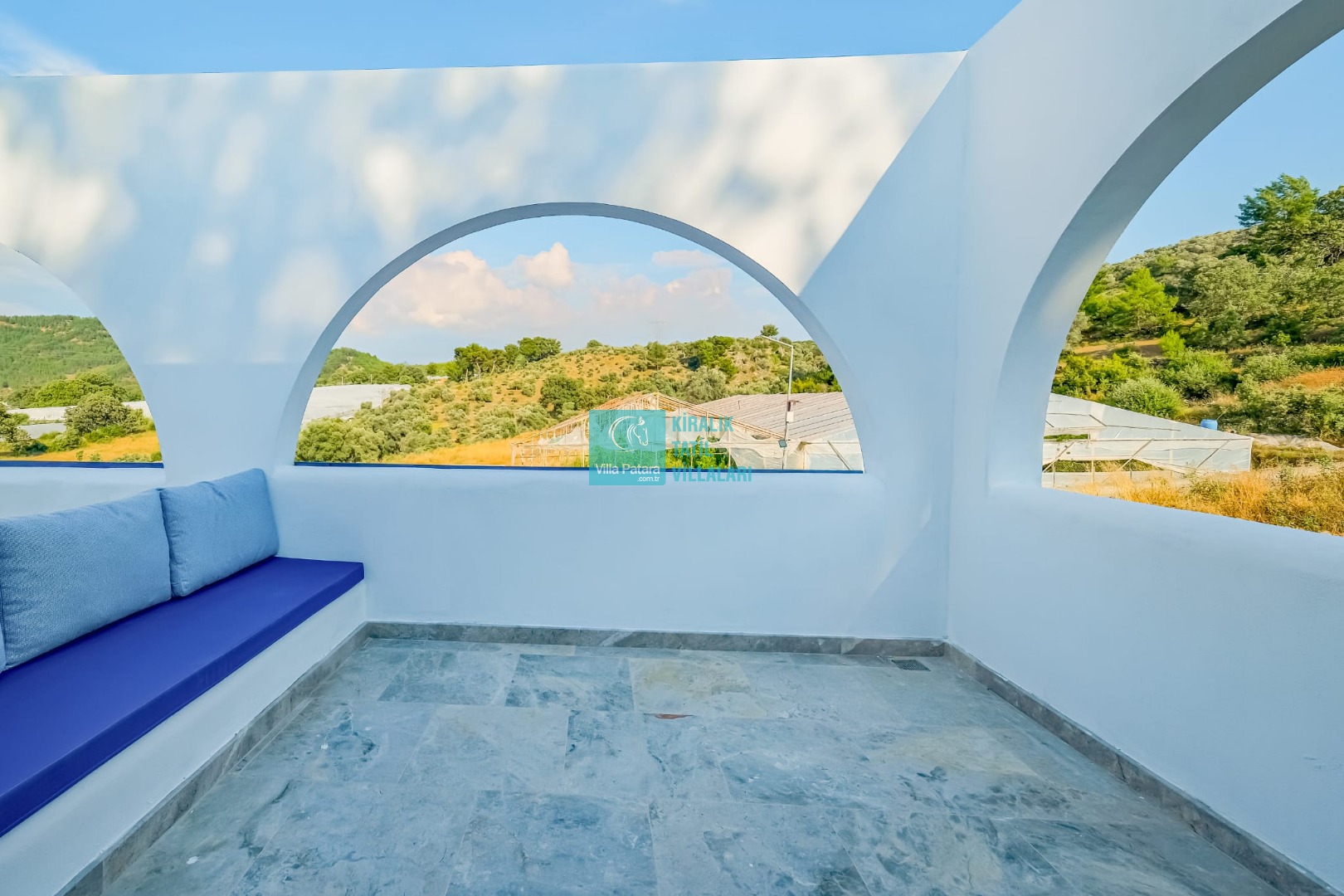Villa Santorini Duo, Fethiye Esenköy mevkiinde konumlandırılmış olup 2 yatak odasıyla 4 kişi konaklama kapasitesine sahiptir.