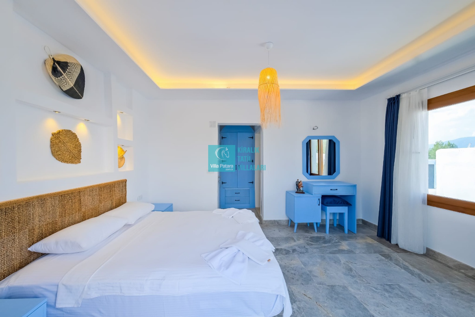 Modern tasarımlı mimarisi ve ferah mobilyalarıyla kendinizi özel hissedebileceğiniz bütün detaylar düşünülmüştür. 2 yatak odasında çift kişilik yatak ve ebeveyn banyosu bulunan villamız arkadaş grupları ve çekirdek aileler tarafından popüler tercihler arasında yer almaktadır. Havuzunda jakuzi bulunan villamızın teras ve balkonu oldukça geniştir. Doğa manzarasına sahip villamızda aileniz ve sevdiklerinizle keyifli anlar geçirebilirsiniz.