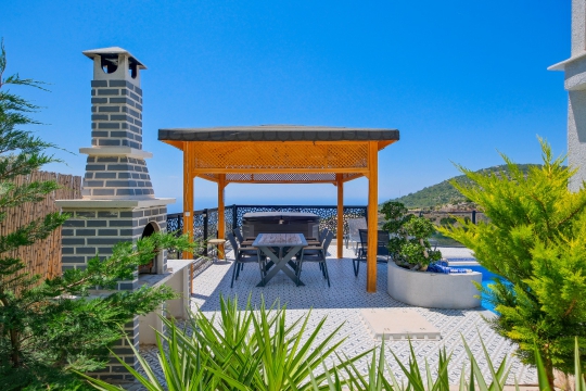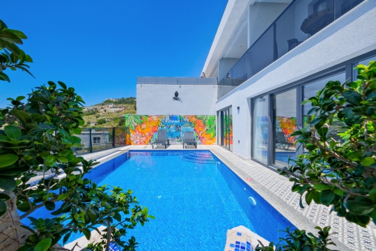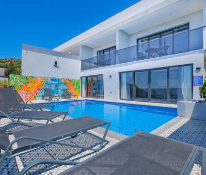 3 yatak odası ile 6 kişilik konaklama imkanı sağlar. Havuzunda sevdiklerinizle keyifli bir tatil geçirebilir; yatak odasındaki jakuzi ile yılın yorgunluğunu atabilirsiniz. Denize bakan manzarası ile tatil hiç bitmesin isteyeceksiniz. Geniş aileler ve kalabalık grupları için uygundur.