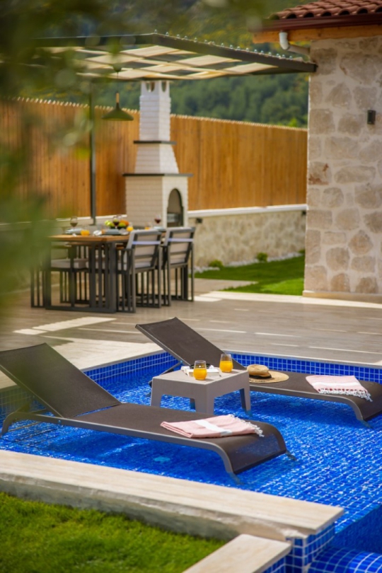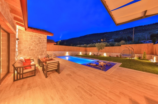 Villa Yaden, Kalkan Sarıbelen köyünde konumlanmakta olan, yeşilliklerin arasında doğa manzaralı kiralık bir villadır. Modern ve konforlu bir şekilde dizayn edilen yazlık villamızda 1 adet yatak odası bulunmakta olup, 2 kişiye konaklama imkanı sağlamaktadır. Yatak odasının içerisinde tüm yorgunluğunuzu atabileceğiniz jakuzi yer almaktadır. Özellikle balayı çiftlerimize hitap eden yazlık villamızın havuz ve havuz terası korunaklı hale getirilmiştir. Kiralık villamız dışarıdan gözükmemektedir. Muhafazakar çiftlerimiz de gönül rahatlığı ile tercih edebilirler. Sessizlik ve sakinlik içerisinde huzur dolu bir balayı tatili için Villa Yaden'i tercih edebilirsiniz.