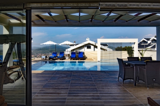 Villa 5 ebeveyn banyolu yatak odasından oluşur, 3 katlıdır. Mutfak ve salon tam donanımlıdır.