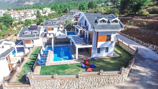Villalar orman ve park arazisi ile çevrilidir ve muhteşem kesintisiz manzaraya sahip bir plato üzerinde oturmaktadır. Blue Lagoon ve efsanevi yamaç paraşütü sporu ile ünlü Ölüdeniz, bu muhteşem villalardan sadece 3 km uzaklıktadır. Liman kenti Fethiye arabayla 15 dakika uzaklıktadır; Ünlü yatçılık beldesi Göcek ile 30 dakikalık sürüş mesafesindedir.