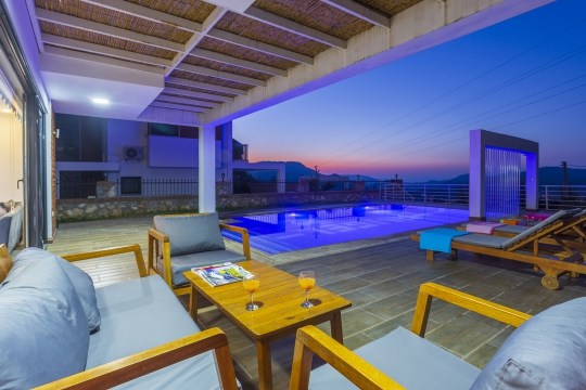 Villanın özel havuzu ve bahçesi, tatiliniz boyunca size özel bir alan sunar. Havuz kenarında güneşlenirken, bahçede yemeklerinizi yiyebilirsiniz. Villanın terası, açık havada keyifli vakit geçirmek için mükemmel bir seçenektir.