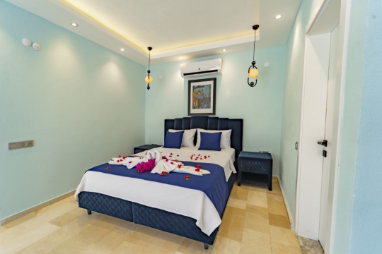 Detayları; Çift kişilik yatak, makyaj masası, komodin, klima, elbise dolabı, jakuzi, banyo ve tuvalet bulunmaktadır.