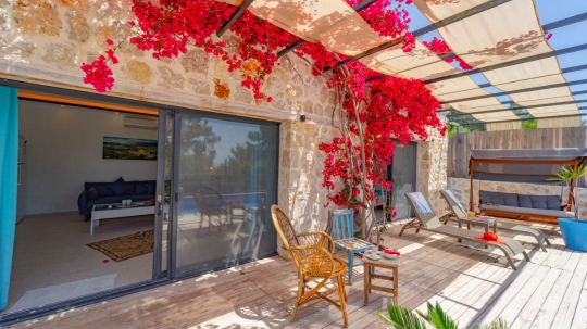 Panoramik Deniz Manzaralı Mehmet Apt Suite C, dünyaca ünlü Patara Plajı'na yalnızca 3 km uzaklıkta bulunan jakuzili balayı villasıdır. Otantik olarak dekore edilmiştir.