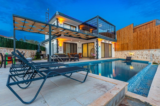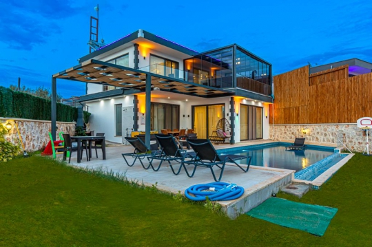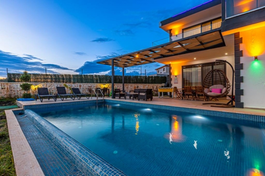 Kalkan Patara mevkisinde bulunan kiralık balayı villası, merkeze yakın mesafesinde bir tatil isteyen çiftlerimiz için oldukça uygun bir seçenektir. Muhafazakar villalar ve balayı villaları kategorisinde yer alan villamız, 3 yatak odası ile 6 kişilik konaklama kapasitesine sahiptir. Havuzu korunaklı ve bahçesi dışarıdan görünmeyen Villa Afra Patara, mahremiyete önem veren ailelerimizin tercih ettiği bir villadır. Ayrıca her iki yatak odasında da jakuzi keyfi sunan villamızda, masa tenisi ve çocuklar için oyun alanı gibi aktiviteleriyle de oldukça dikkat çekmektedir.