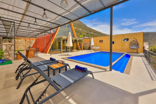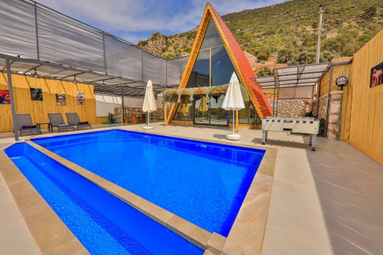 Kalkan Ordu mevkisinde bulunan kiralık balayı villası, doğa içinde sessiz sakin bir konumda tatil isteyen çiftlerimiz için oldukça uygun bir seçenektir. Muhafazakar villalar ve balayı villaları kategorisinde yer alan villamız, 1 yatak odası ile 2 kişilik konaklama kapasitesine sahiptir. Havuzu korunaklı ve bahçesi dışarıdan görünmeyen Villa Ahşap Anka, mahremiyete önem veren çiftlerimiz için huzur dolu bir tatil fırsatı sunuyor. Ayrıca yatak odasında misafirlerimizin rahatlaması için 2 kişilik jakuzi konforu da sağlamaktadır.