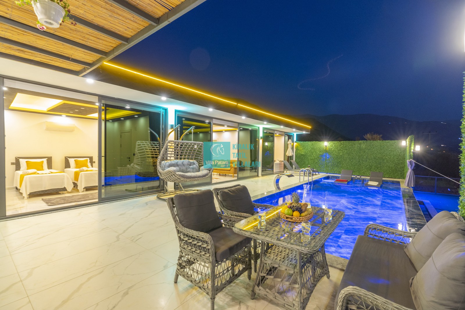 Genel Notlar : Doğa içerisinde yer alan villalarımızın tamamı böcek, sinek, kelebek, haşereler vb. için düzenli olarak ilaçlanmaktadır. Doğa içerisinde konuma sahip olan villalarda, merkezde yer alan villalara nazaran böcek, sinek, kelebek, haşereler vb. çıkma ihtimali daha yüksektir. Bu not sadece bu villa ile ilgili değildir. Doğa içerisinde konuma sahip olan tüm villaların bilgilerinde yazılmaktadır.