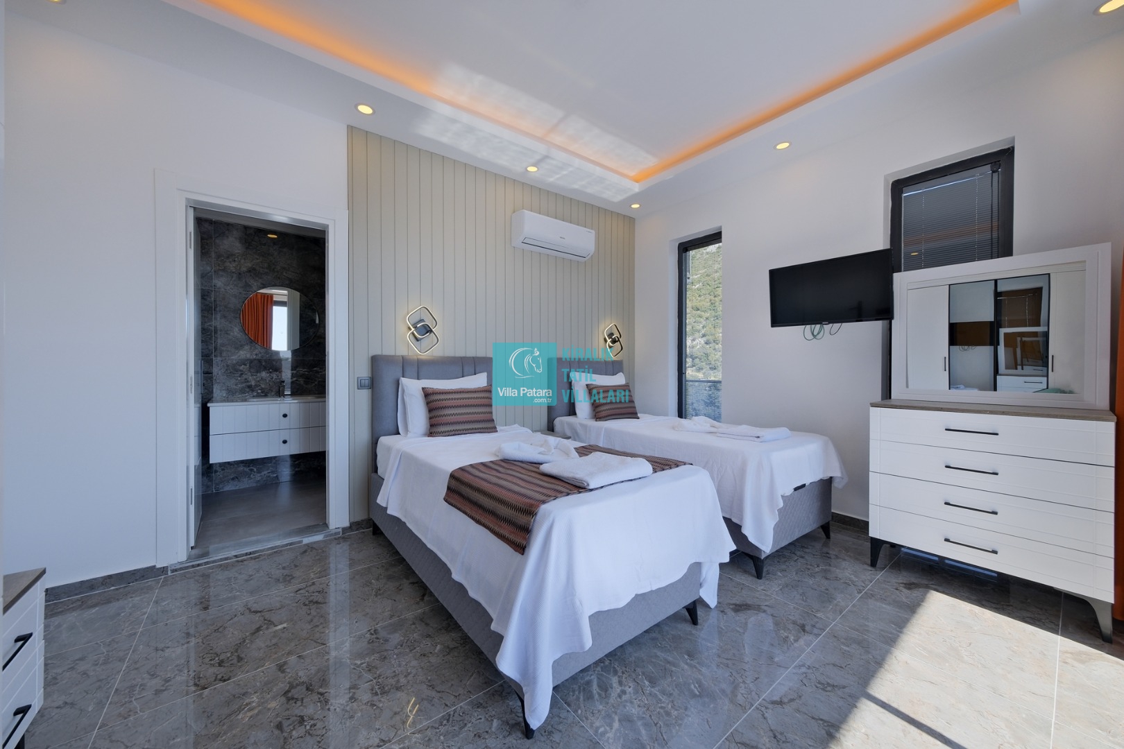 Villa Aleyna, 3 yatak odalı 6 kişi konaklama kapasitesine sahiptir. Kalkan İslamlar mevkiinde yer almaktadır. Deniz,doğa , şelale manzaralı, bahçeli, jakuzili, aktiviteli,özel havuzlu villalar katogorisinde yer alan tatil villamızda konforlu bir tatil geçirmeniz adına her detayı düşünülerek dekore edilmiştir. Özel havuzu muhteşem manzarası bahçesi ve aktiviteleri mevcuttur villamızda.Jakuzili olan tatil villamız yatak odalarından deniz manzarası görünmektedir.