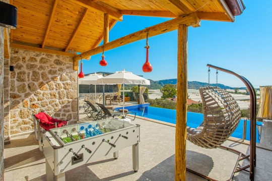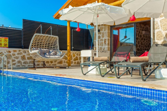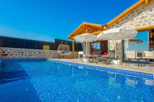 Kalkan Patara Karaağaçlıbogaz mevkisinde bulup size eşsiz bir balayı tatili yaşatmak için tasarlanmıştır. Konumu itibariyle, sessiz sakin bir bölgede yer alan villamız , tek kattan oluşmaktadır. Girişte modern amerikan mutfak ve salon bulunuyor. Yine zemin katta bulunan suit aile yatak odasında, ayrıca bir de jakuzi bulunmaktadır Villamızın havuzu korunaklıdır, muhafazakar aileler ve balayı çiftleri için özel bir seçenek olup, Hamam ve Saunası ile unutulmaz bir tatil için siz değerli misafirlerini beklemektedir.