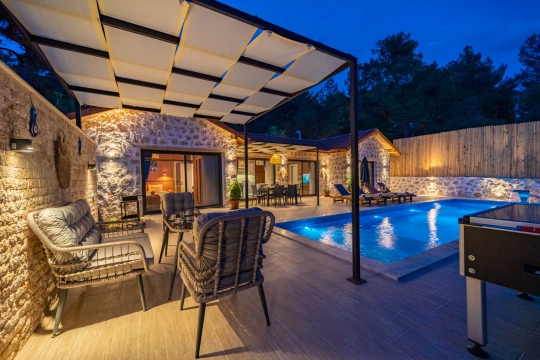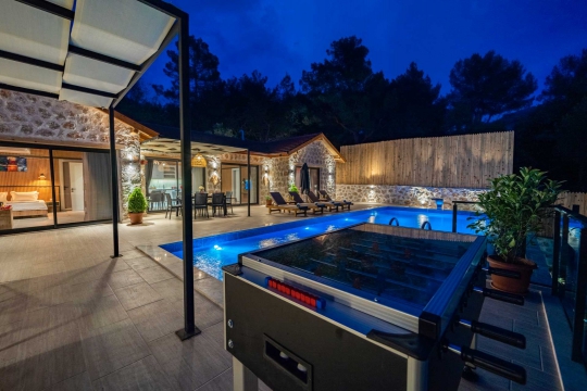Kalkan İslamlar bölgesinde yer alan Villa Almina, 2 oda ve 4 kişilik konaklama kapasitesiyle lüks bir tatil deneyimi sunuyor. Bu muhteşem villa, korunaklı havuzu ve verandasıyla huzurlu bir ortam sağlamaktadır. Villa Almina, tatilinizi unutulmaz kılmak için özel olarak tasarlanmış lüks bir villa kiralama seçeneğidir.