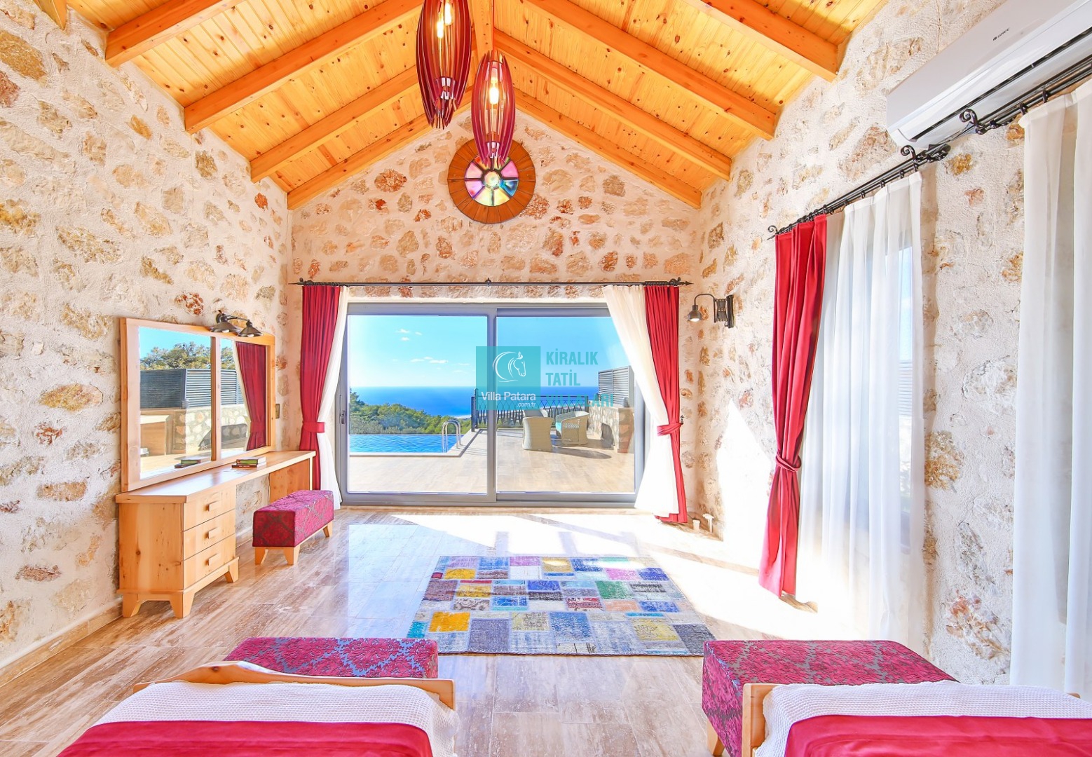 Patara’nın Yalı mevkisinde bulunan kiralık muhafazakar tatil villası Almon, şehrin gürültüsünden ve kirliliğinden uzak doğa içinde bol oksijenli bir tatil isteyen ailelerimiz ve balayı çiftlerimiz için oldukça uygun bir seçenektir. Muhafazakar villalar ve balayı villaları kategorisinde yer alan villamız, 2 yatak odası ile 4 kişilik konaklama kapasitesine sahiptir. Havuzu korunaklı ve bahçesi dışarıdan görünmeyen Villa Almon, mahremiyete önem veren ailelerimiz için huzur dolu bir tatil fırsatı sunuyor. Villanın hemen hemen her noktasında Patara’nın eşsiz kumsalını ve muhteşem gün batımı manzarasını doyasıya izleyebileceğiniz villa Almon, hem iç hem de dış mimarisi ve kullanılan kaliteli malzemeleri ile dikkat çekmektedir. Yatak odalarından ve teras katından panoramik olarak Patara plajını gören bu muhafazakar villa, doğa ile iç içe, sessiz ve sakin bir ortamda unutulmaz bir tatil için sizleri bekliyor.