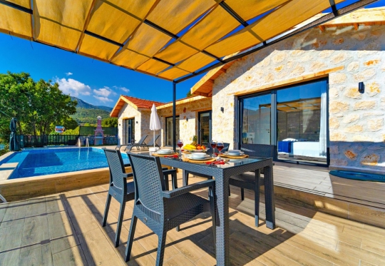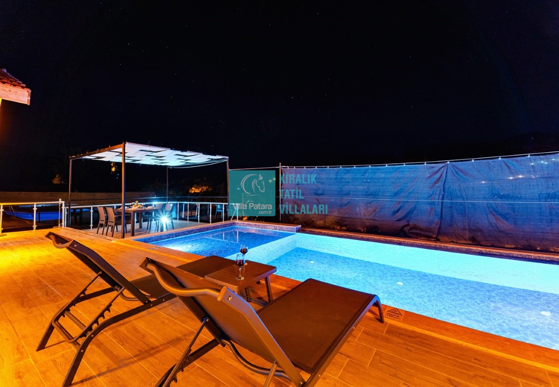 Villa Alya İkizce Kalkan İkizce mevkiinde konumlanmıştır; doğa manzarasına sahip muhafazakar villamızdır. Çekirdek aileler ve balayı çiftlerimizin en çok tercihi arasında olan bir villadır. Özel yüzme havuzu ve havuz terasında harika zamanlar geçirebileceğiniz gönlünüzce eğlenip güneşlenebileceğiniz bir ortama sahiptir. Kiralık tatil villamızın etrafının korunaklı olması dolayısıyla havuz ve havuz terası dışarıdan gözükmemektedir.