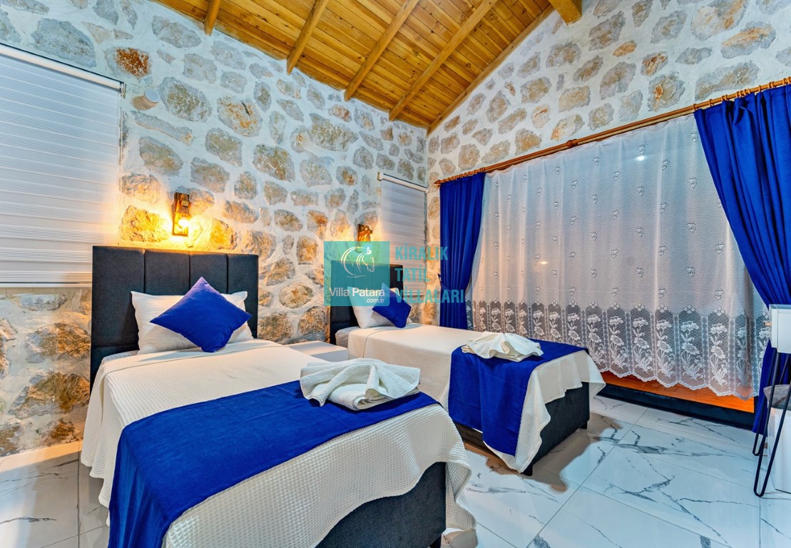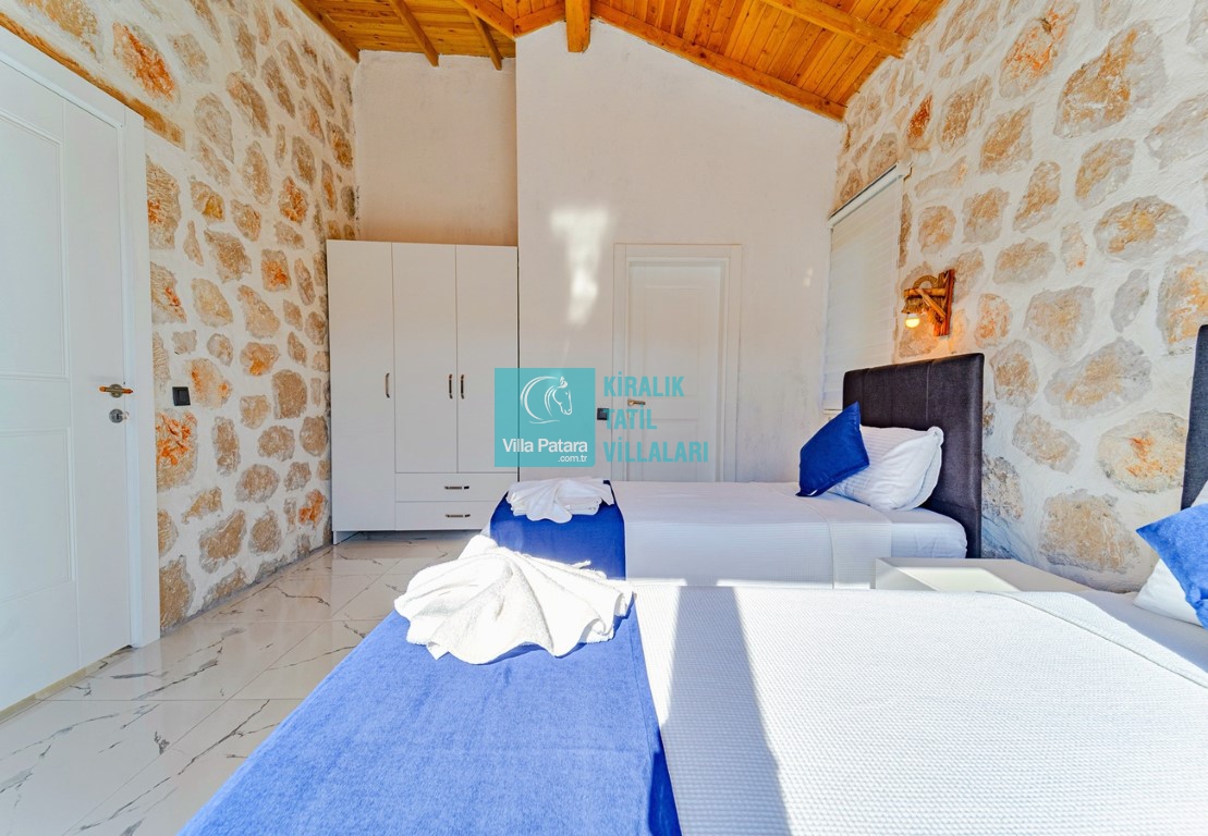 2. Yatak Odası : 2 tek kişilik yatak, komodin, makyaj masası, elbise dolabı ve banyo tuvalet bulunmaktadır.