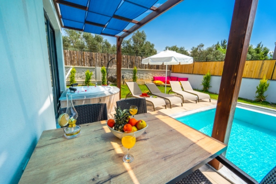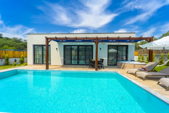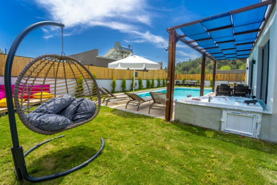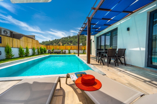 Havuz : Villamıza ait ebatları; 4 X 8 metre ve derinliği 1.50 metre olmak üzere özel yüzme havuzu bulunmaktadır. Havuz ve bahçe bakımı günde 1 kez sabah veya akşam yapılmaktadır. Havuz kenarında ise şezlong, bahçe oturma grubu, yemek masası, salıncak ve çocuk parkı bulunmaktadır.