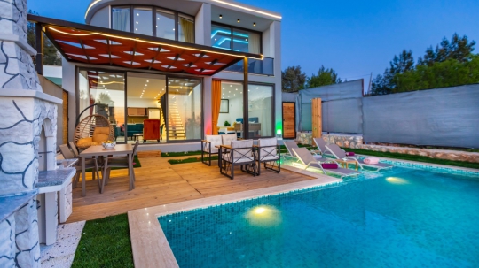 Havuz ve bahçe çevresi korunaklı (muhafazakar villalar ) villalarımızda %100 görünmeme garantisi vermiyoruz bu tarz villalarda her zaman % 5 sakınma payı mevcuttur.