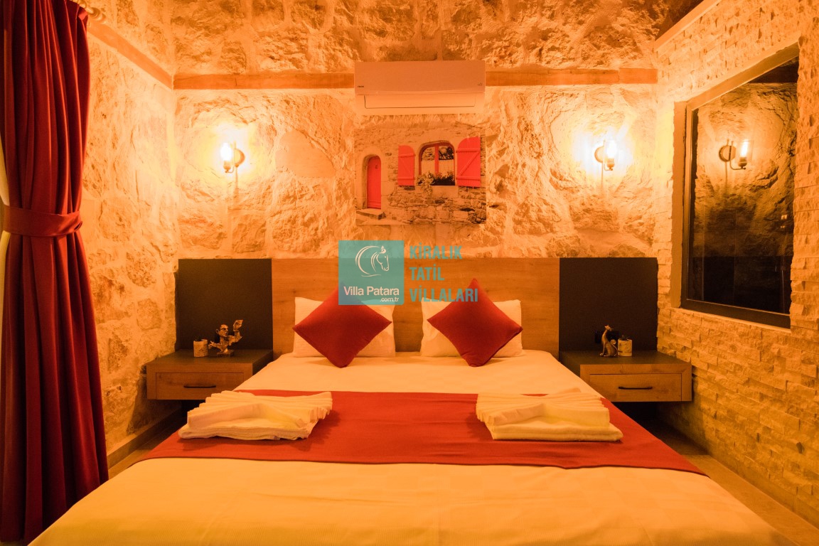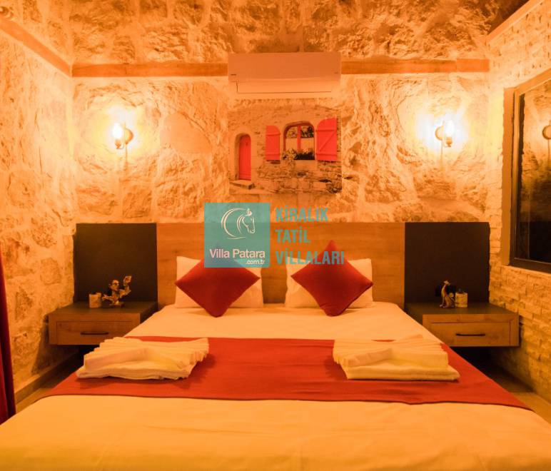 1. Yatak Odası : Bir adet çift kişilik yatak, klima, elbise dolabı, komodin, jakuzi, TV, makyaj masası, banyo ve tuvalet bulunmaktadır.