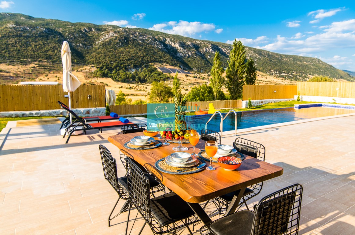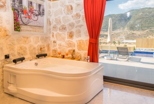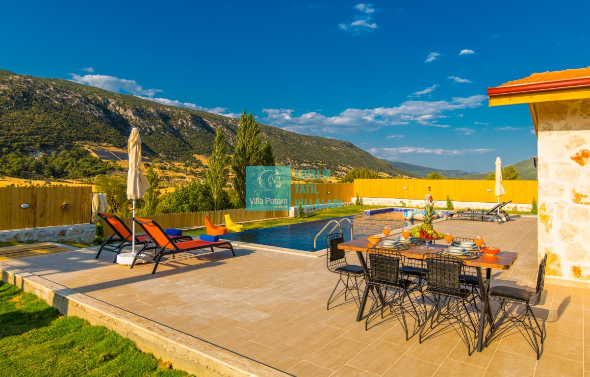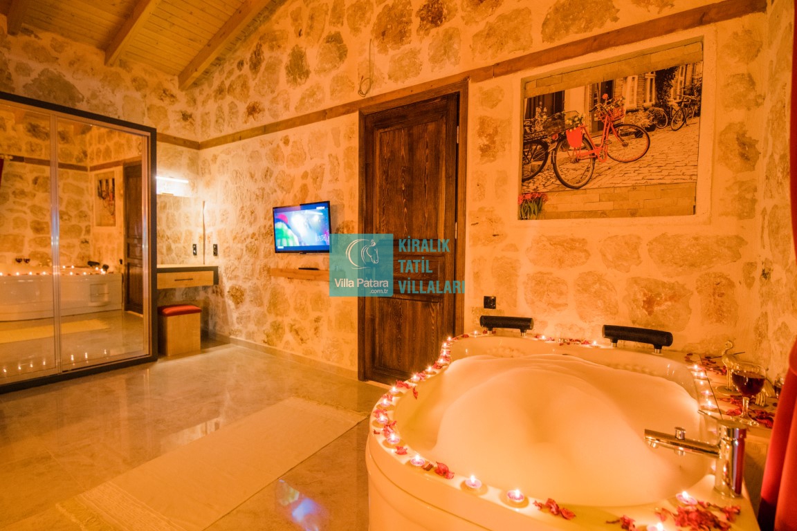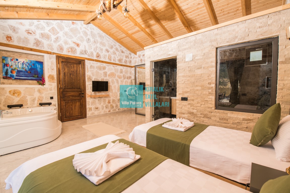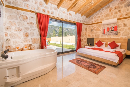 Villa Anetos, Kalkan Sarıbelen Bbölgesindeyer alan doğa manzaralı jakuzili villamız 2 yatak odalı 4 kişilik konaklama kapasitesine sahiptir. Zarif ve zevkli ahşap dekorları ile hayranlık uyandıran bir tasarıma sahip olan villamız geniş bahçesi ve korunaklı havuz terası ile muhafazakar ailelerimiz ve balayı çiftlerimizin gözdesi olmayı başarmıştır. Villamızın keyifle zaman geçirebileceğiniz geniş bahçesinde, havuz, şezlong, güneş şemsiyesi, oturma köşesi, barbekü ve pergule bulunmaktadır. Sevdikleriniz ve aileniz ile birlikte şehir gürültüsünden uzak, sessiz sakin ve huzurlu bir tatil Villa Anetos'ta sizleri bekliyor.