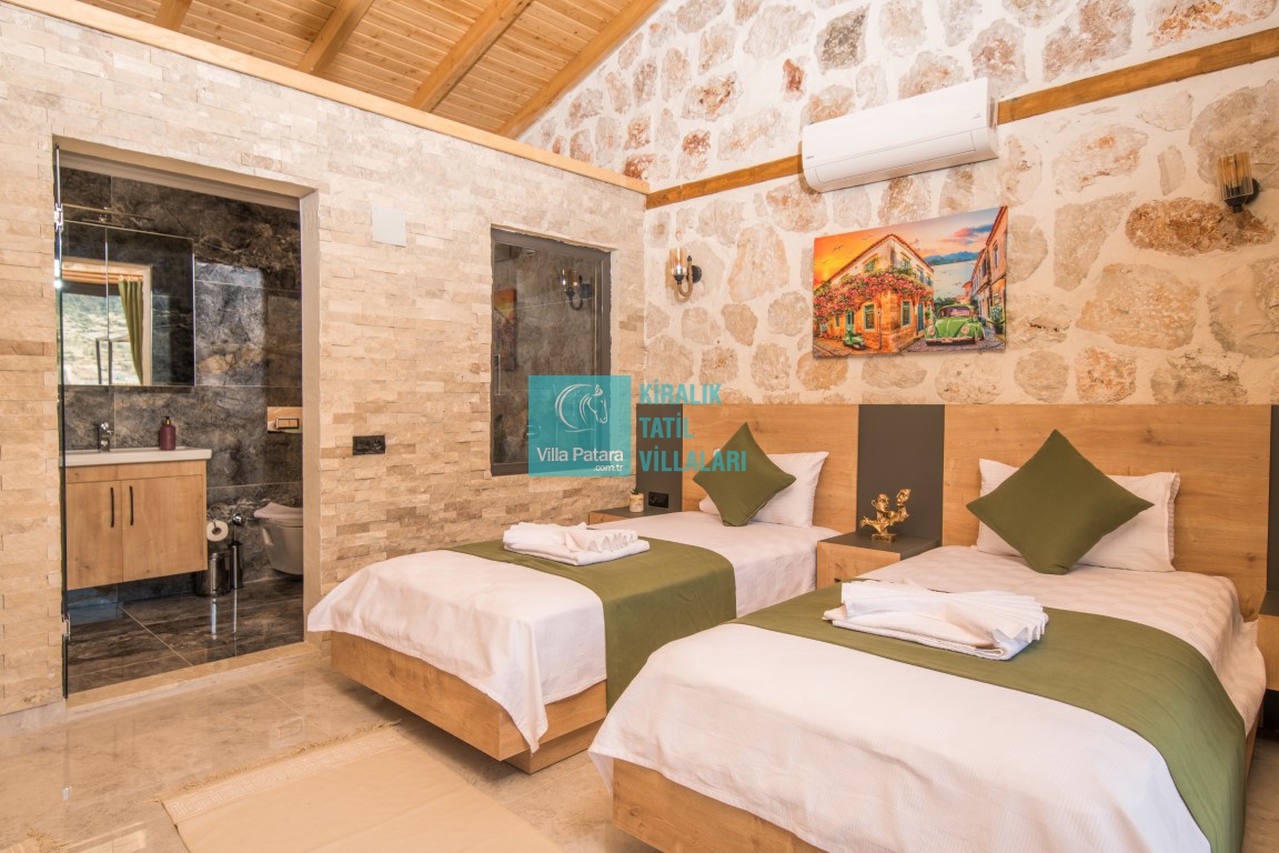 2. Yatak Odası : İki adet tek kişilik yatak ( birleştirilebilir ), klima, elbise dolabı, komodin, jakuzi, TV, makyaj masası, banyo ve tuvalet bulunmaktadır.