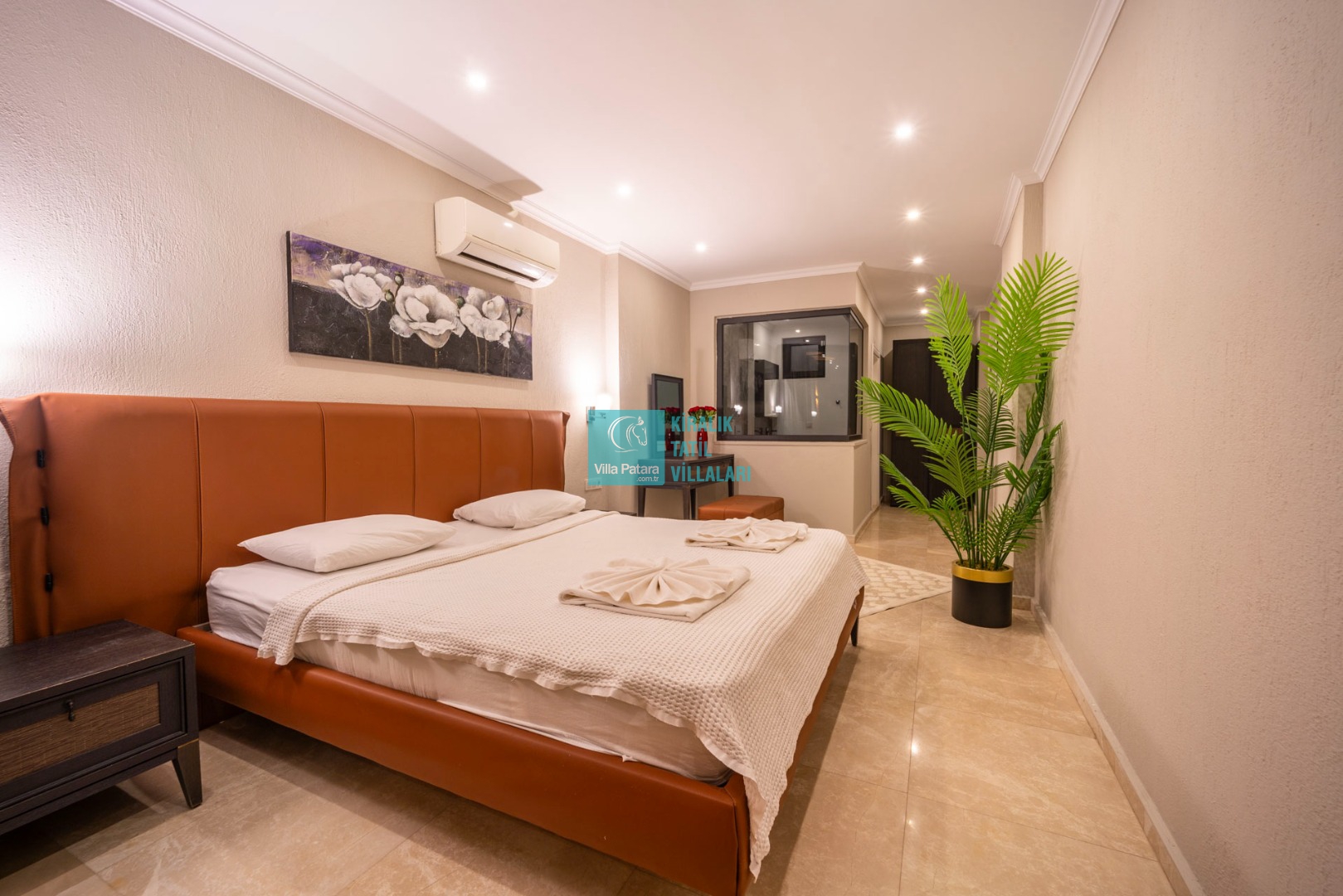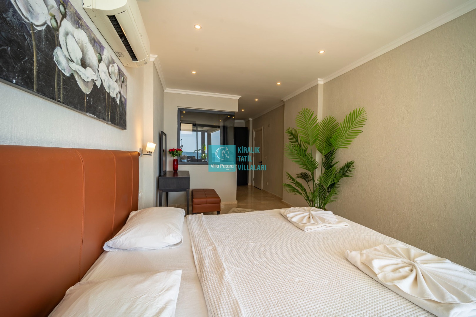 2. Yatak Odası : 1 adet çift kişilik yatak, klima, komodin, makyaj masası, elbise dolabı, banyo ve lavabo bulunmaktadır.
