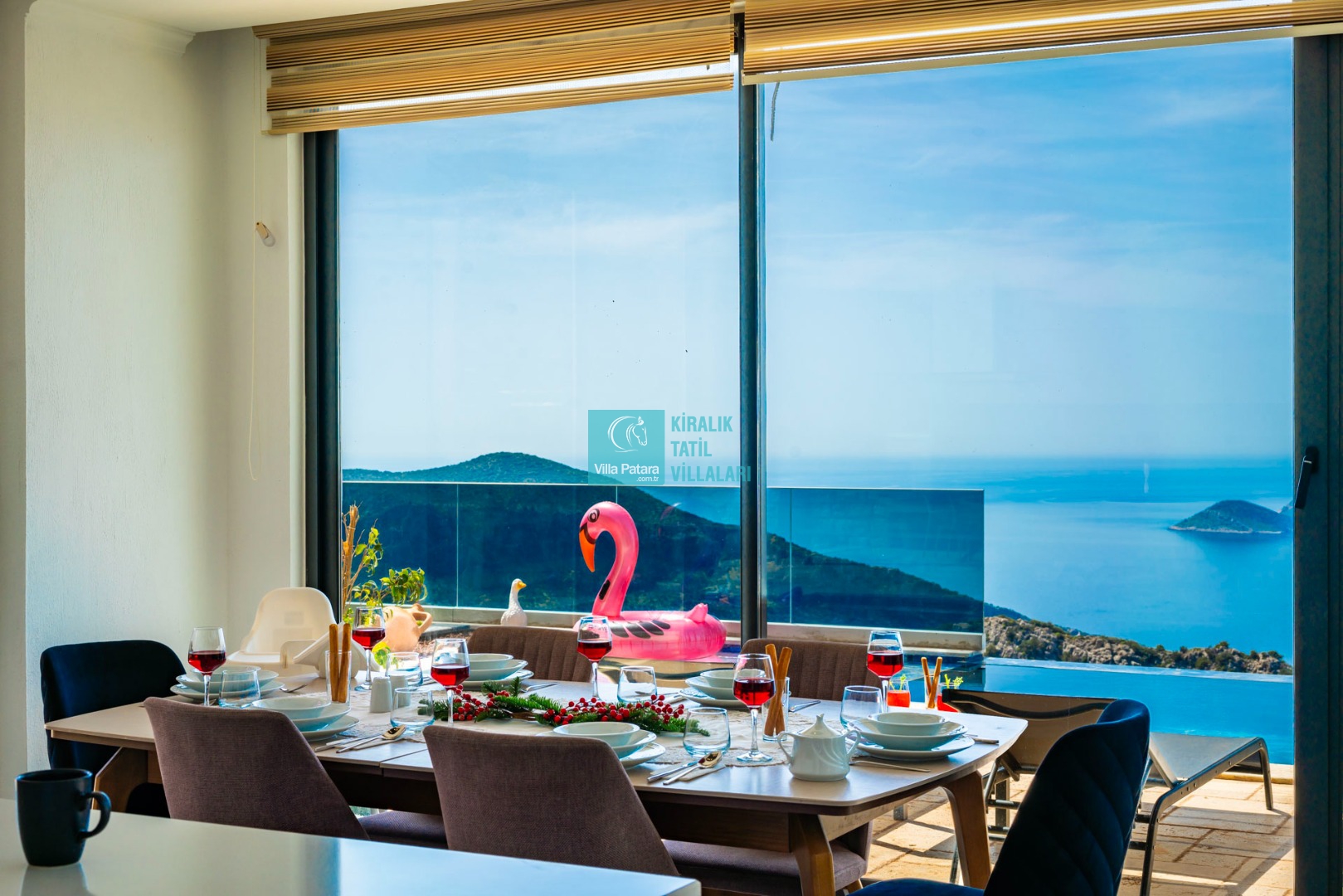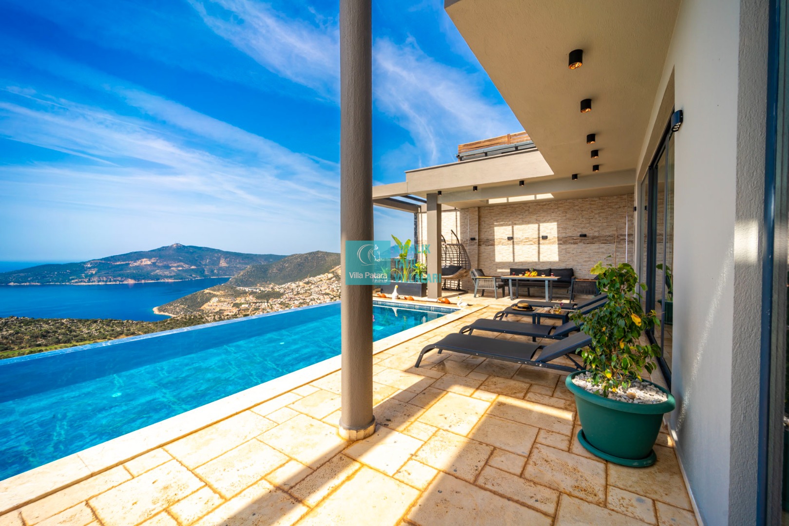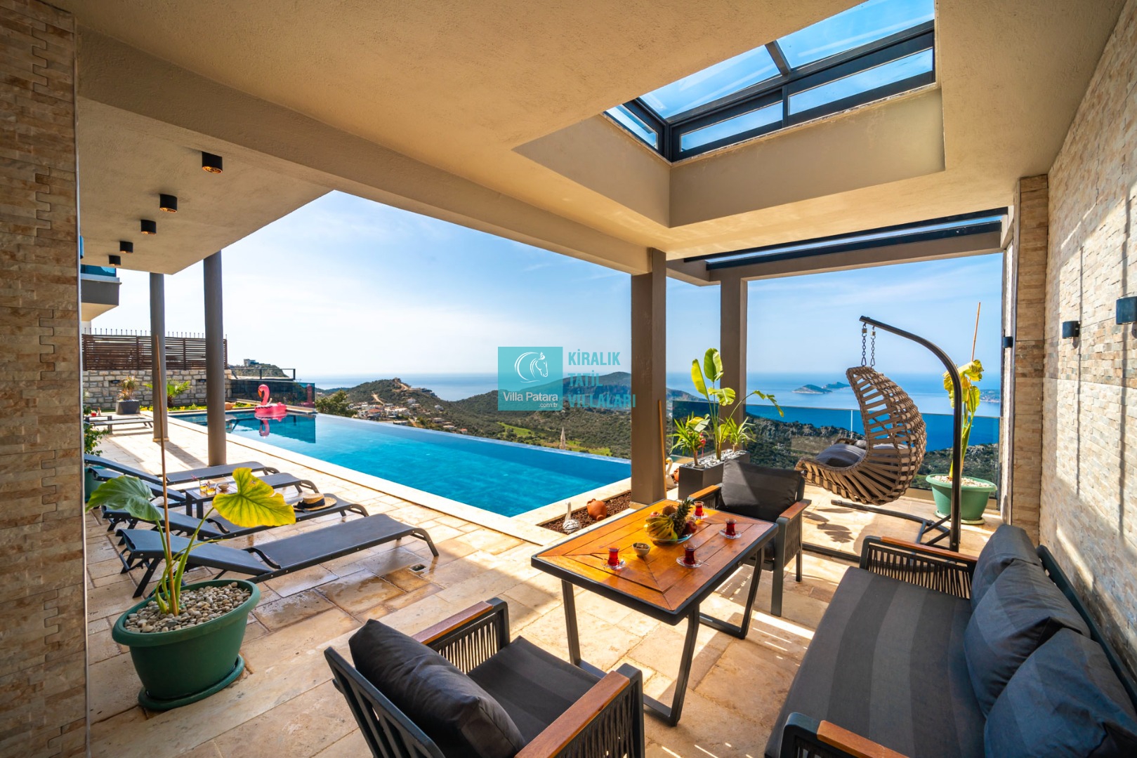 Geniş sonsuzluk havuzunda serinlerken gökyüzüyle birleşen ufka dalabilir, günün yorgunluğunu hamam, sauna ya da jakuzi keyfiyle geride bırakabilirsiniz. Aileler ve arkadaş grupları için ideal olan bu villa, kısmi korunaklı havuz terası sayesinde muhafazakar ailelerin de huzurla tercih edebileceği bir seçenektir. Eğlenceye doyacağınız villa içerisinde langırt, masa tenisi ve bahçede çocuklar için özel bir oyun parkı da bulunmaktadır.