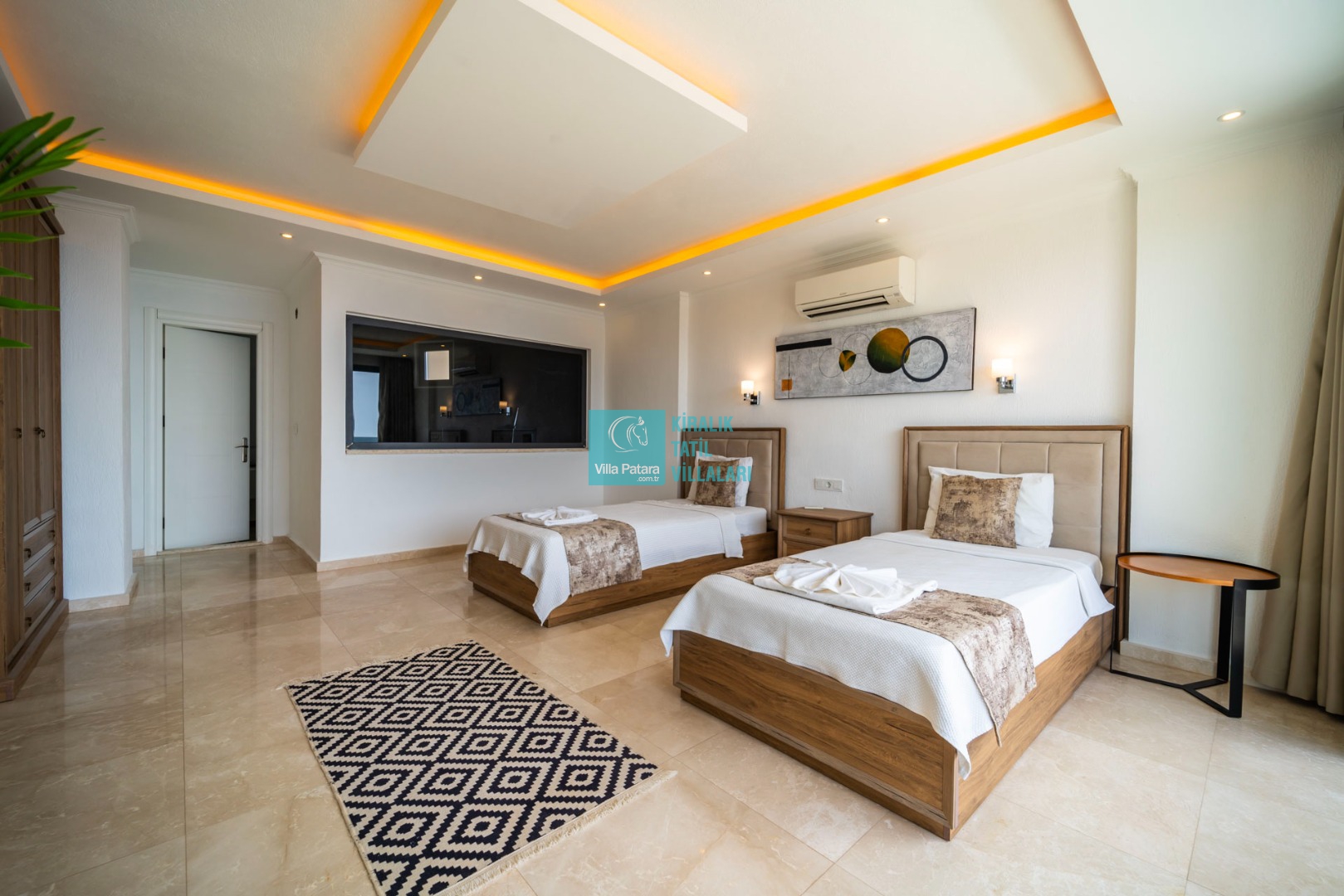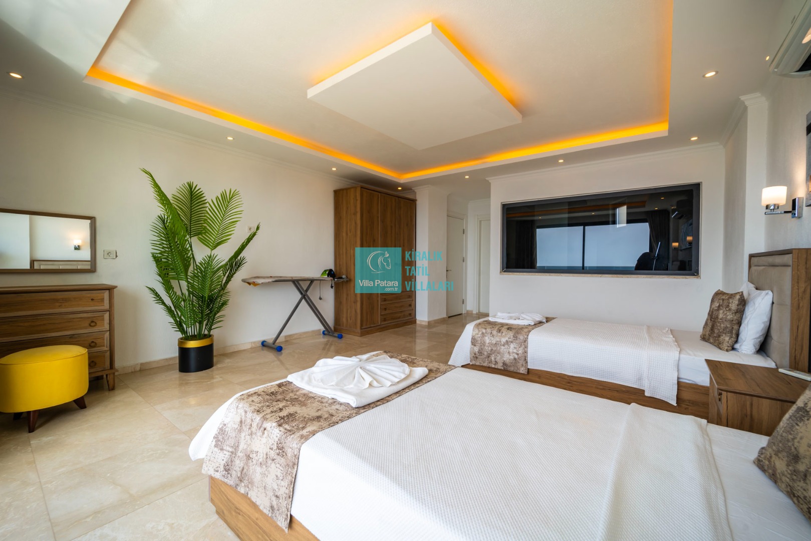 3. Yatak Odası : 2 adet tek kişilik yatak, klima, komodin, makyaj masası, banyo ve lavabo bulunmaktadır.
