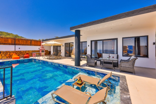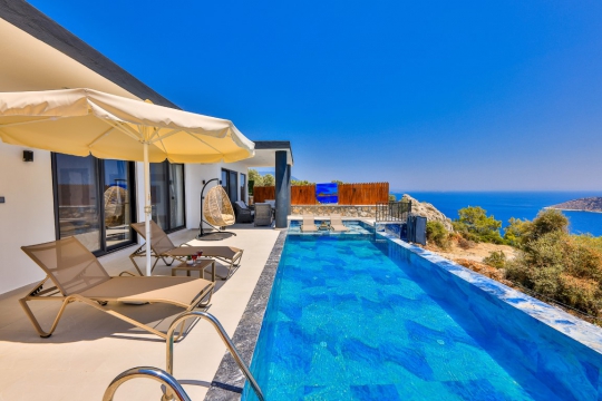 Kalkan Patara Yalı bölgesinde harika bir bölgeye konumlandırılmış deniz manzaralı kiralık villa seçeneklerimizdendir. Kiralık Villa Arcadia 5, balayı villaları, jakuzili villalar, deniz manzaralı villalar, denize yakın villalar, muhafazakar villalar ve doğa içerisinde villalar kategorisinde yer alan 2 yatak odalı 4 kişi konaklama olanağına sahip villamızdır. Kendini gösteren, modern ve çarpıcı bir etki yaratan, bir villadır. Villamız, havuz terasından muhteşem deniz manzarasına hakimdir. Bu villada, her şey istediğiniz gibi tasarlanmış. Konforunuz için özel olarak tasarlanan Villa Arcadia 5, ihtiyaçlarınızı tam anlamıyla karşılamak için gereken her şeyi bünyesinde barındırıyor. Gözlerden uzak rahat bir tatil olanağını her anlamda sizlere sunabilen özel bir villadır. Deniz manzarası eşliğinde hem keyifli vakitler geçirebilir hem de tüm yılın yorgunluğunu atabilirsiniz. Ailenizle ,arkadaş grubunuzla veya balayı tatilleri için unutulmaz zamanlar geçirebileceğiniz kiralık tatil villalarından biridir. İnşası yeni tamamlanmış doğa içerisindeki bu modern villamız sizleri tatile davet etmektedir.