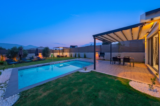 Fethiye merkez mevkiide bulunan villa, 2 yatak odasıyla 4 kişilik konaklama kapasitesi sunmaktadır. Çekirdek aileler ve balayı çiftleri tarafından tercih edilen villa, havuz alanı korunaklı bir yapıya sahiptir. Merkezi konumu sayesinde tercihlerin başında gelen villa, oldukça ferah ve geniş bahçe alanında kapasiteye uygun şezlong takımı, oturma grubu, salıncak ve barbekü alanına sahiptir. Havuz terasına açılan zevkle döşenmiş konforlu oturma odası ve tam donanımlı mutfağı, bir yatak odasında çift kişilik yatak; ikinci yatak odasında da çift kişilik yatak bulunmaktadır. İç mekan yapısı ve donanımları da en az dış mekan kadar ferah, modern ve konforunuz ön planda tutularak oluşturulmuştur.