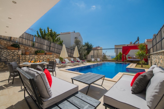 Villa Arges; Kalkan Kızıltaş mevkinde konumlanmış deniz manzaralı,modern ve şık tasarıma sahip 4 yatak odalı 8 kişilik kapasiteli bir tatil villasıdır.Geniş aileler ve arkadaş grupları için uygun olan villamız Kalkan merkeze ve plaja yakınlığı ile dikkat çekmektedir.Villamız yarı korunaklı olup havuz ve havuz terasında keyifli vakit geçirmeniz için tüm ayrıntılar sizler için düşünülmüştür.