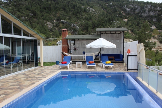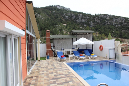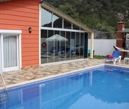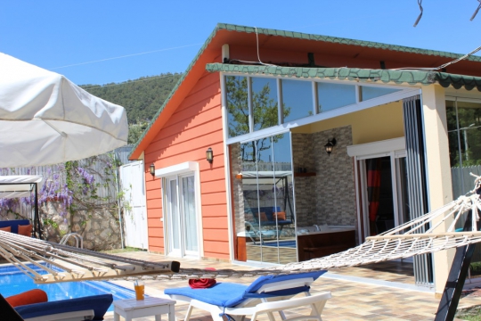 Ayrıca villamız da bulunan jakuzi ve özel yüzme havuzu sayesinde ruhunuzu ve bedeninizi dinlendirme fırsatı yakalayabileceksiniz. Villamızın özel yüzme havuzunun korunaklı bir şekilde tasarlanması özellikle balayı çiftlerimizin memnuniyeti için yarar sağlamaktadır. Aileniz veya balayı çiftlerimiz için oldukça uygun olan her ayrıntı düşünülerek dizayn edilmiş villamıza siz değerli misafirlerimizi beklemekteyiz. Villamız tek yatak odalı fakat ek yataklar ile beraber 5 kişiye kadar konaklama kapasitesine sahip.
