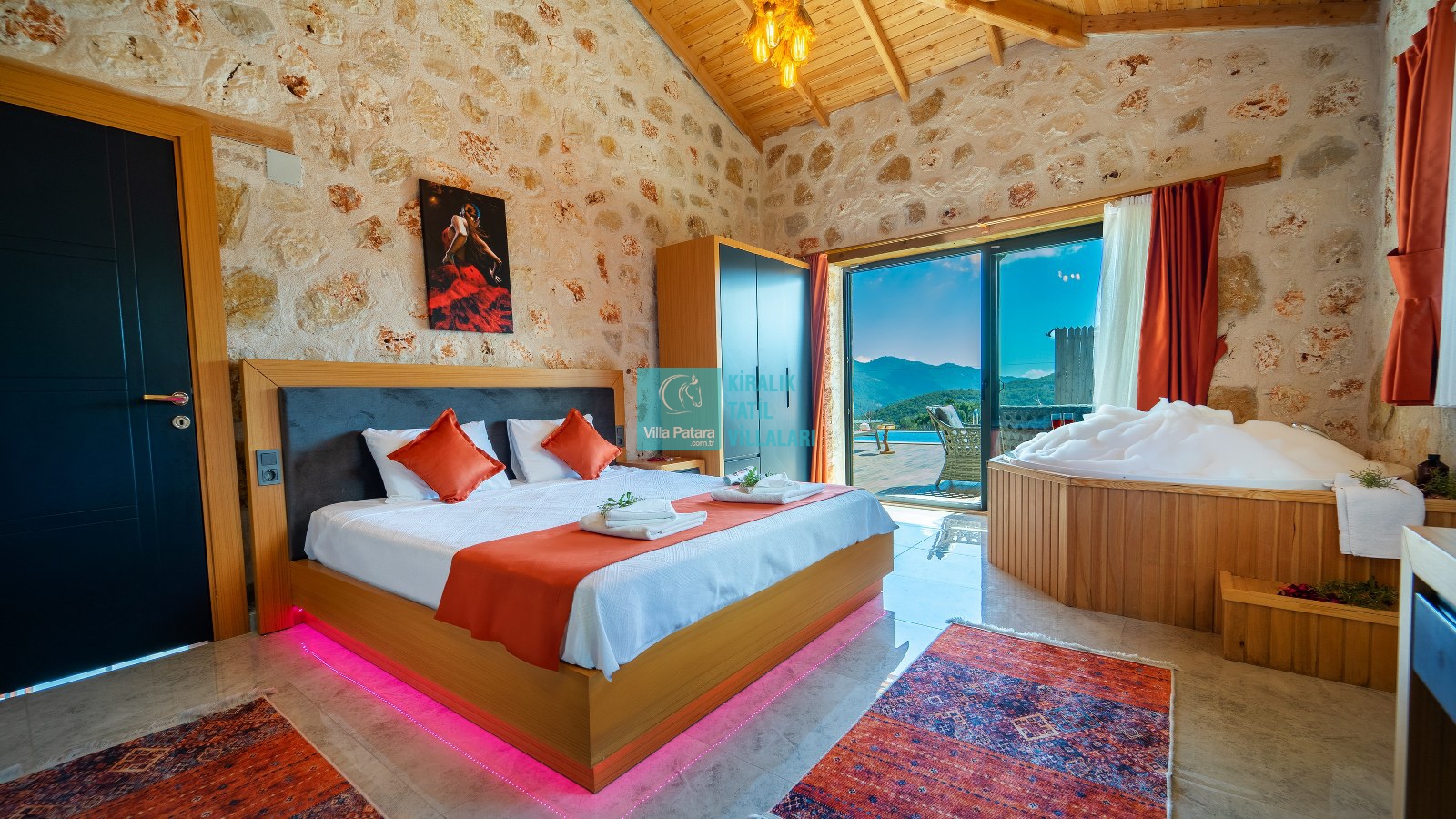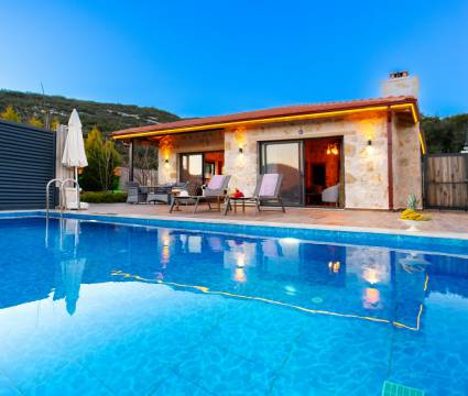 Villa Asena Kaş İkizce bölgesinde doğa içerisine konumlanan havuzu korunaklı, muhafazakar kiralık balayı villalarımızdandır. Kiralık Villa börteçine, balayı villaları, jakuzili villalar, muhafazakar villalar ve doğa içerisinde villalar kategorisinde yer almaktadır. Misafirlerine her zaman mahremiyet içinde bir tatil sunan bu villada havuz bölümü tamamen istenmeyen bakışlardan uzakta kalacak şekilde tasarlanmış. Korunaklı olan bu bölümde, muhafazakar ve gizlilik konusunda özel hassasiyetlere sahip misafirler gönül rahatlığıyla tatil yapabiliyor. Villamız tamamen yemyeşil bir doğanın içinde, şehrin gürültüsünden ve stresinden uzakta, eşsiz doğa manzarası eşliğinde bir tatil için ideal olan villamız, tatilini lüks ve ayrıcalıklı yaşamak isteyenler için inşa edilmiştir. Gözlerden uzak rahat bir tatil olanağını her anlamda sizlere sunabilen özel bir villadır. Villa Asena, taş mimarisi sayesinde İkizce'nin benzersiz atmosferine tam olarak uyum sağlıyor. Etrafın ağaçlarla kaplı coğrafyasına tam olarak uyum sağlayan ve oksijeni net olarak hissedebilmenizi sağlayan bu villada evinizin konforunu ve huzurunu yaşayacaksınız.1 yatak odalı 2 kişi konaklama kapasiteli ve tamamen özgür olacağınız Villa Asena, jakuzi detayı ile de size ayrıcalıklı bir tatil sunuyor. İnşası yeni tamamlanmış doğa içerisindeki bu modern villamız sizleri tatile davet etmektedir.