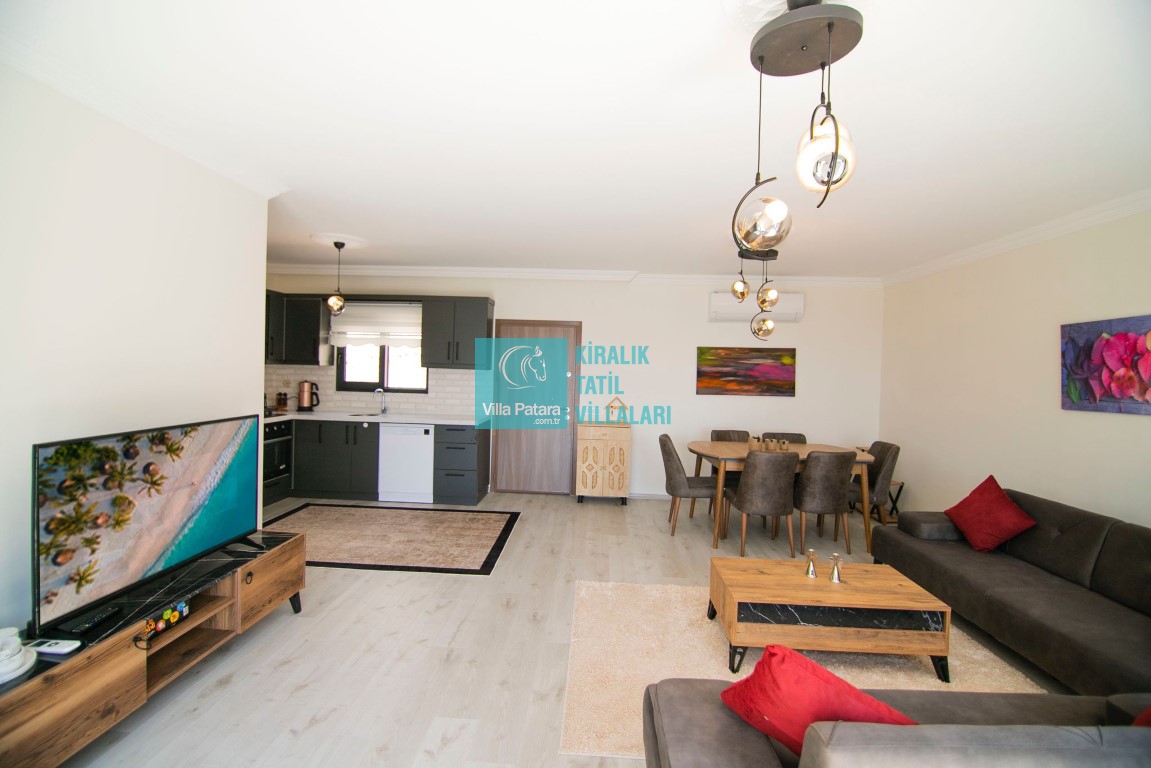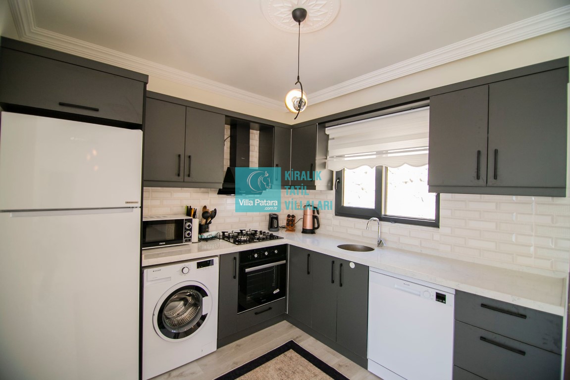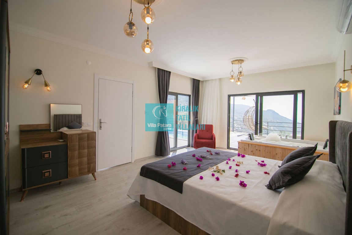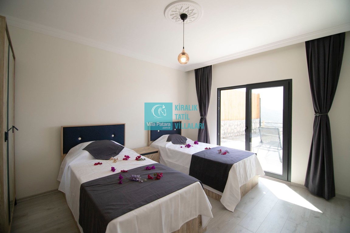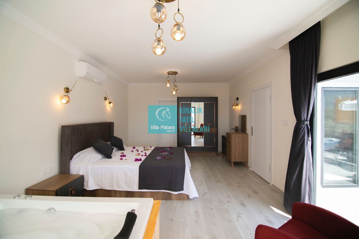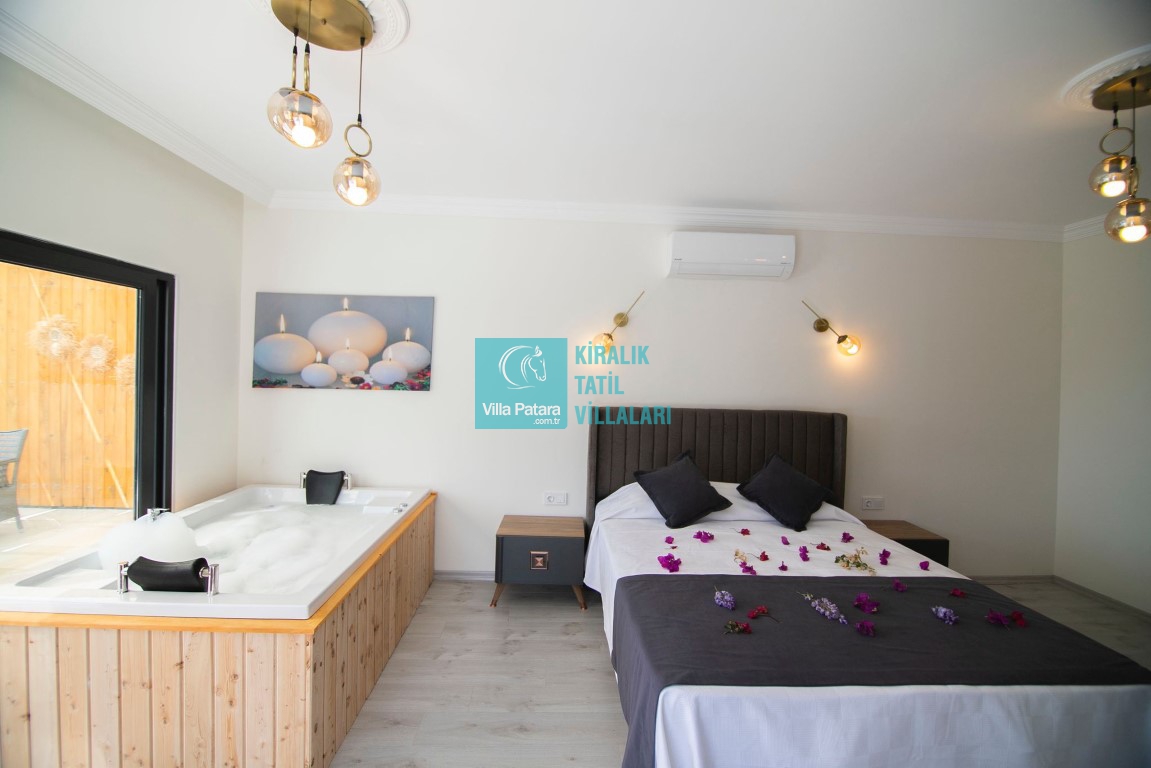 Villamızın içerisinde iki adet yatak odası ve iki adet banyo bulunmaktadır. Birinci yatak odasında çift kişilik yatak, klima, banyo ve jakuzi bulunmaktadır. İkinci yatak odasında iki adet tek kişilik yatak, klima ve banyo bulunmaktadır. Salon kısmında mutfak, klima ve televizyon bulunmaktadır.