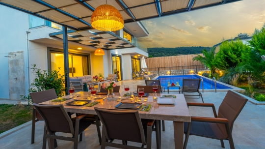 Genel Notlar : Doğa içerisinde yer alan villalarımızın tamamı böcek, sinek, kelebek, haşereler vb. için düzenli olarak ilaçlanmaktadır. Doğa içerisinde konuma sahip olan villalarda, merkezde yer alan villalara nazaran böcek, sinek, kelebek, haşereler vb. çıkma ihtimali daha yüksektir. Bu not sadece bu villa ile ilgili değildir. Doğa içerisinde konuma sahip olan tüm villaların bilgilerinde yazılmaktadır.