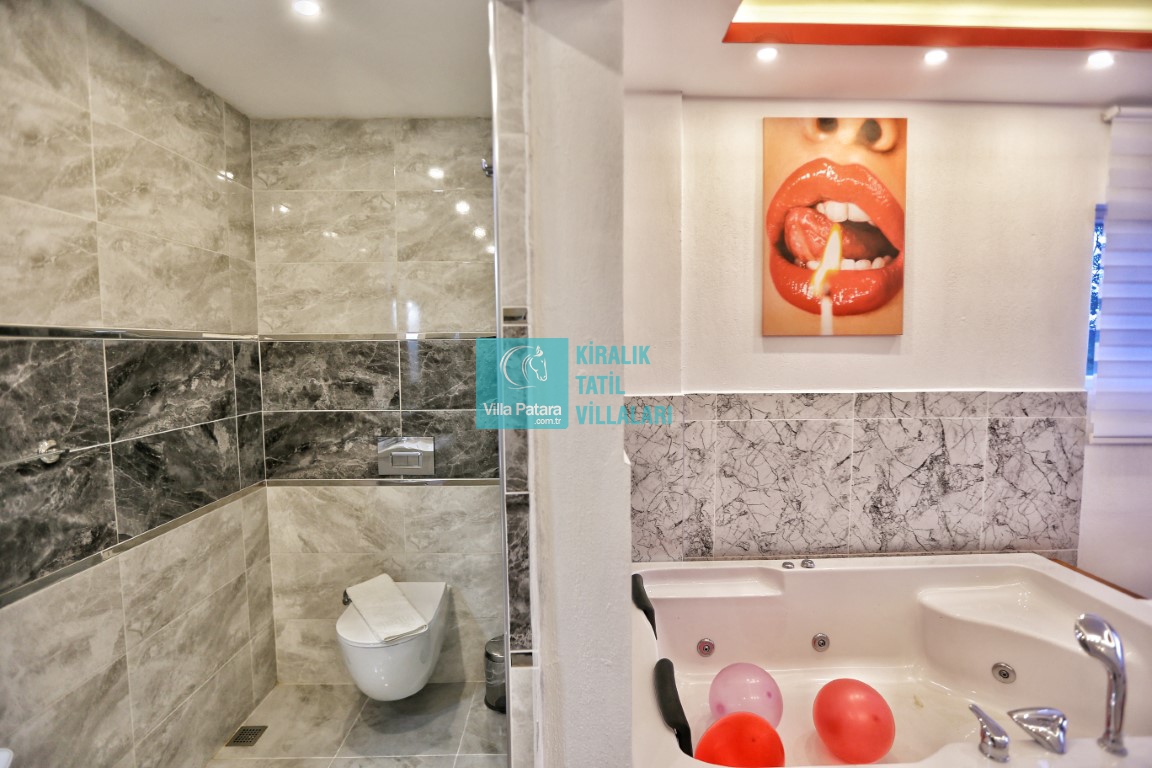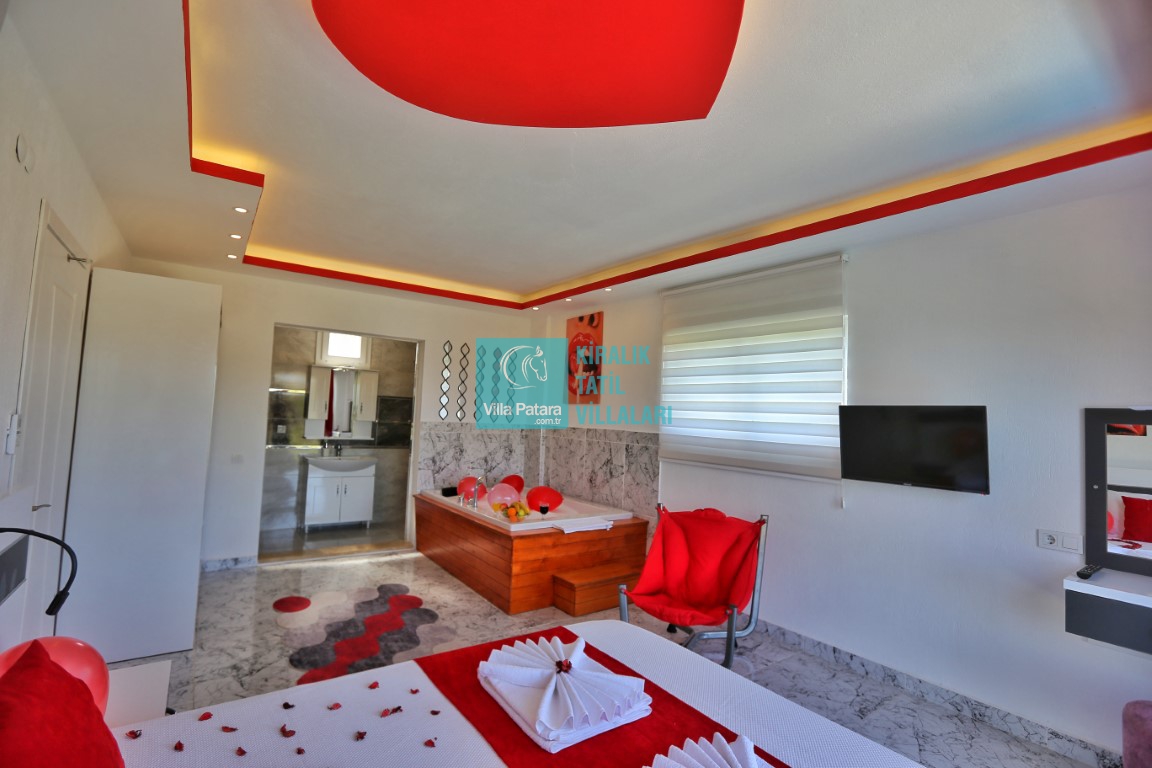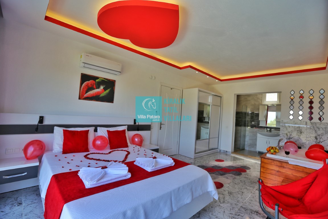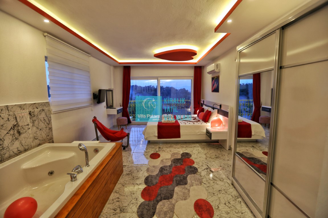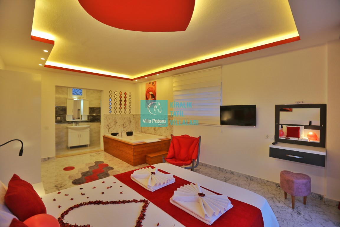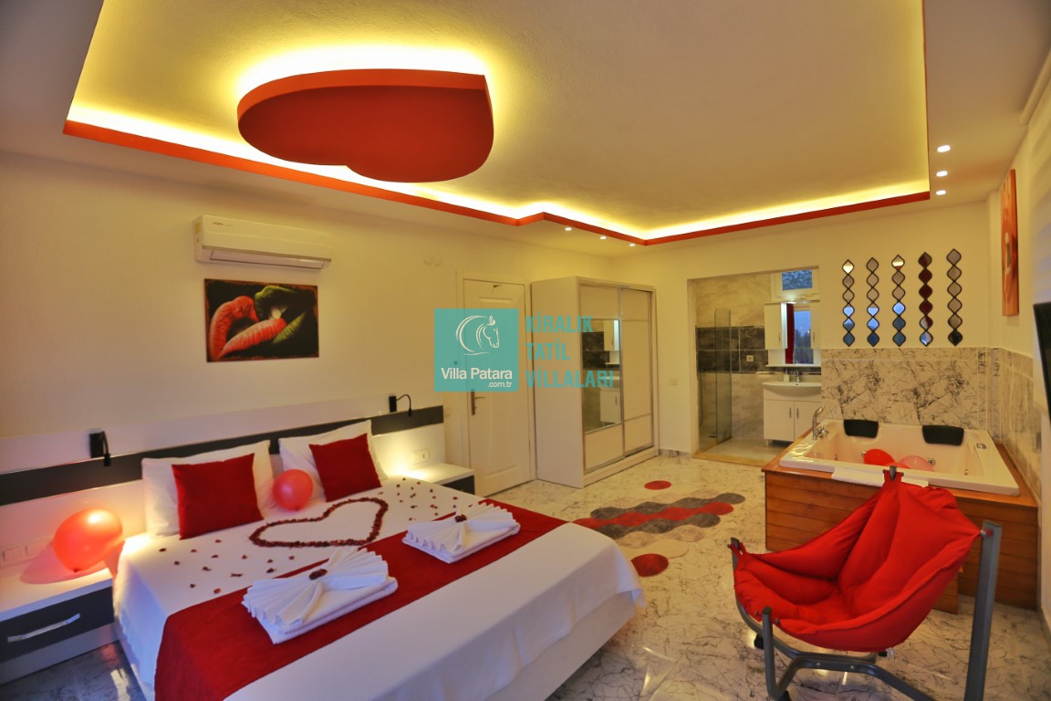 Yatak Odası 1 : Çift kişilik yatak, klima, TV, Jakuzi, banyo WC