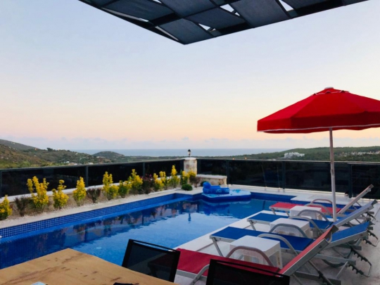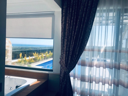 Yatak odası 1. Ebebeyin odası deniz manzaralı jakuzili ve özel havuzundan ayrı giriş