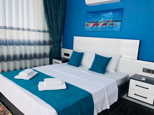 Yatak odası 2. çift yataklı deniz manzaralı banyolu odadır.