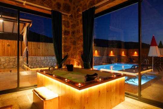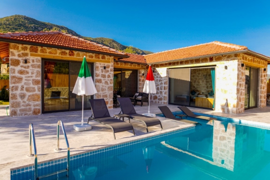 Villa Atlas Kalkan'ın Sarıbelen mevkine konumlandırılmış 2 yatak odalı 4 kişilik kapasiteye sahip olan kiralık tatil villasıdır.