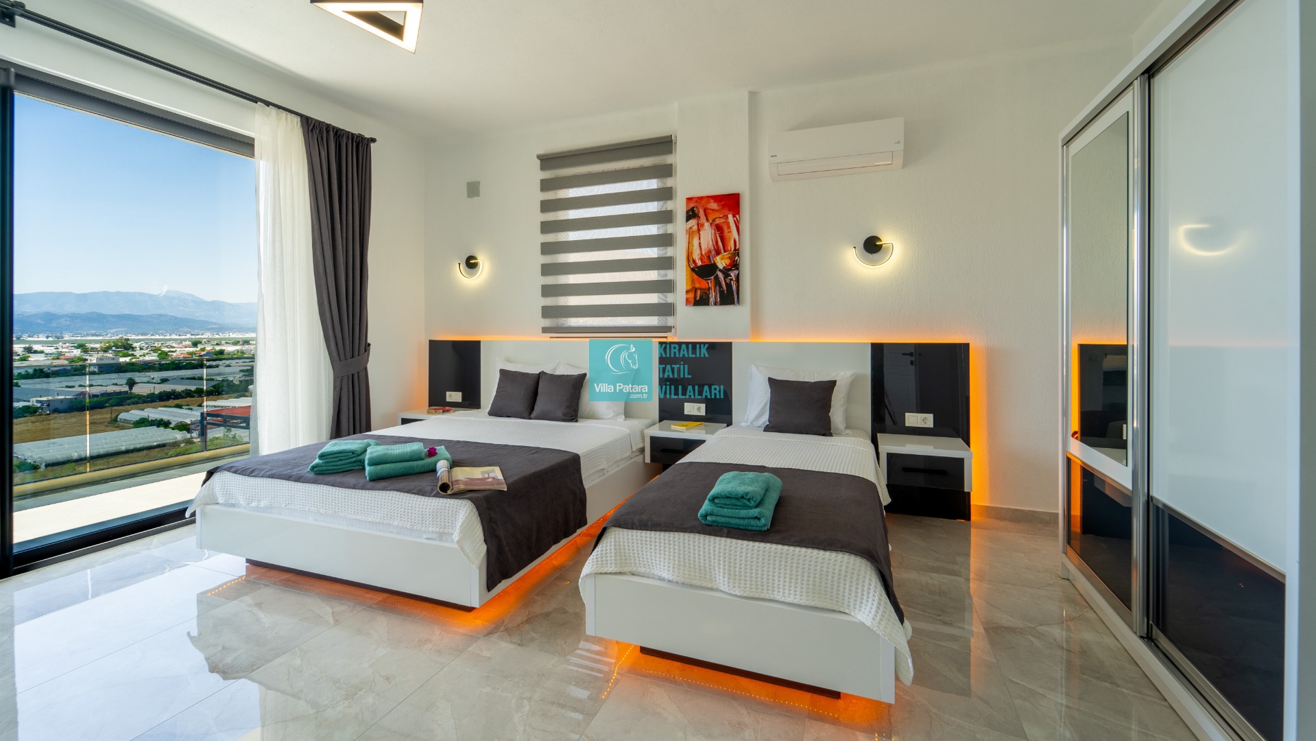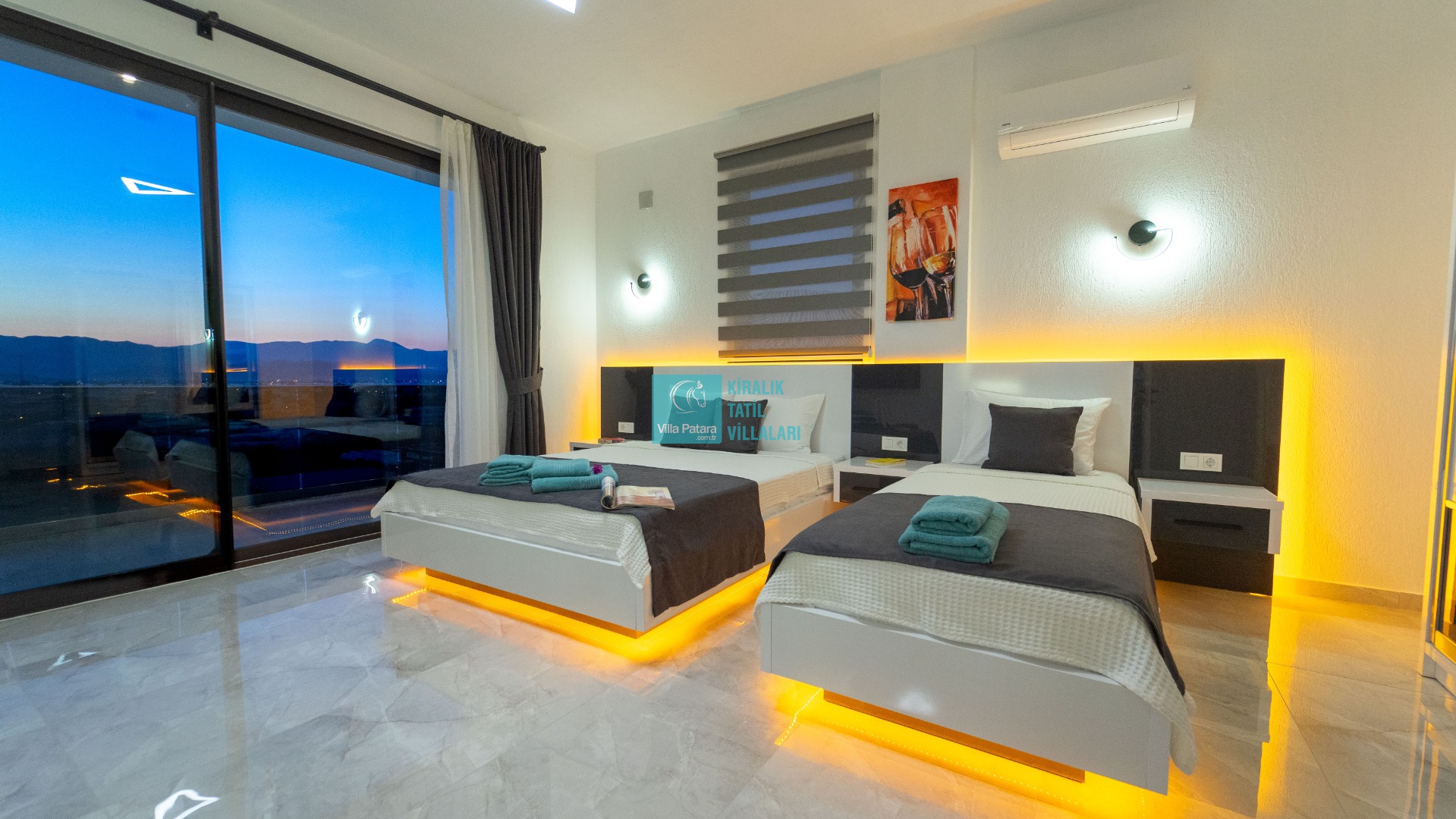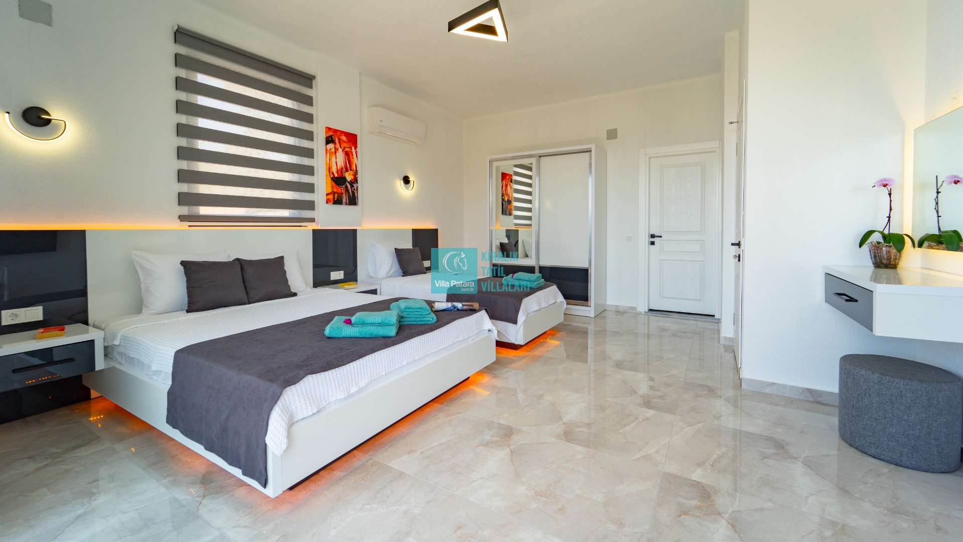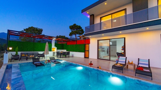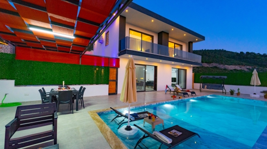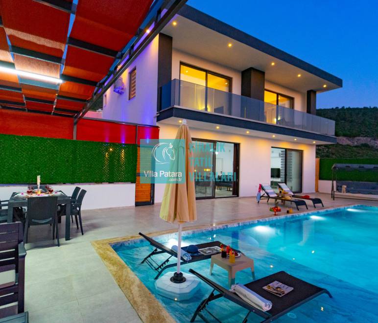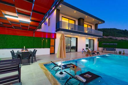 Villa Atlas, geniş ve rahatlatıcı 2 yatak odasıyla donatılmış olup, toplam 5 kişilik konaklama kapasitesine sahiptir. Modern iç tasarımı, konforlu bir konaklamanın yanı sıra lüksün ve rahatlığın tadını çıkarmanızı sağlar. Tatiliniz boyunca ihtiyaç duyabileceğiniz her ayrıntının düşünüldüğü bu villa, özel korunaklı havuzu ile dikkat çeker. Havuz alanı, güneşlenmek, serinlemek ve keyifli anlar yaşamak için ideal bir mekan sunuyor.