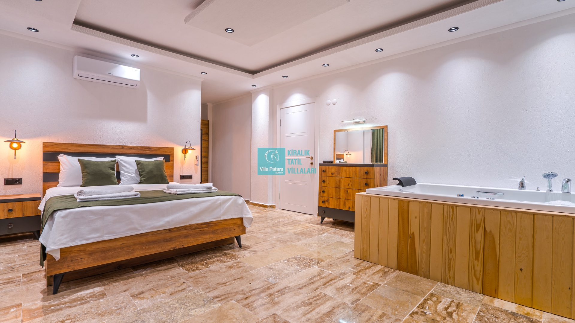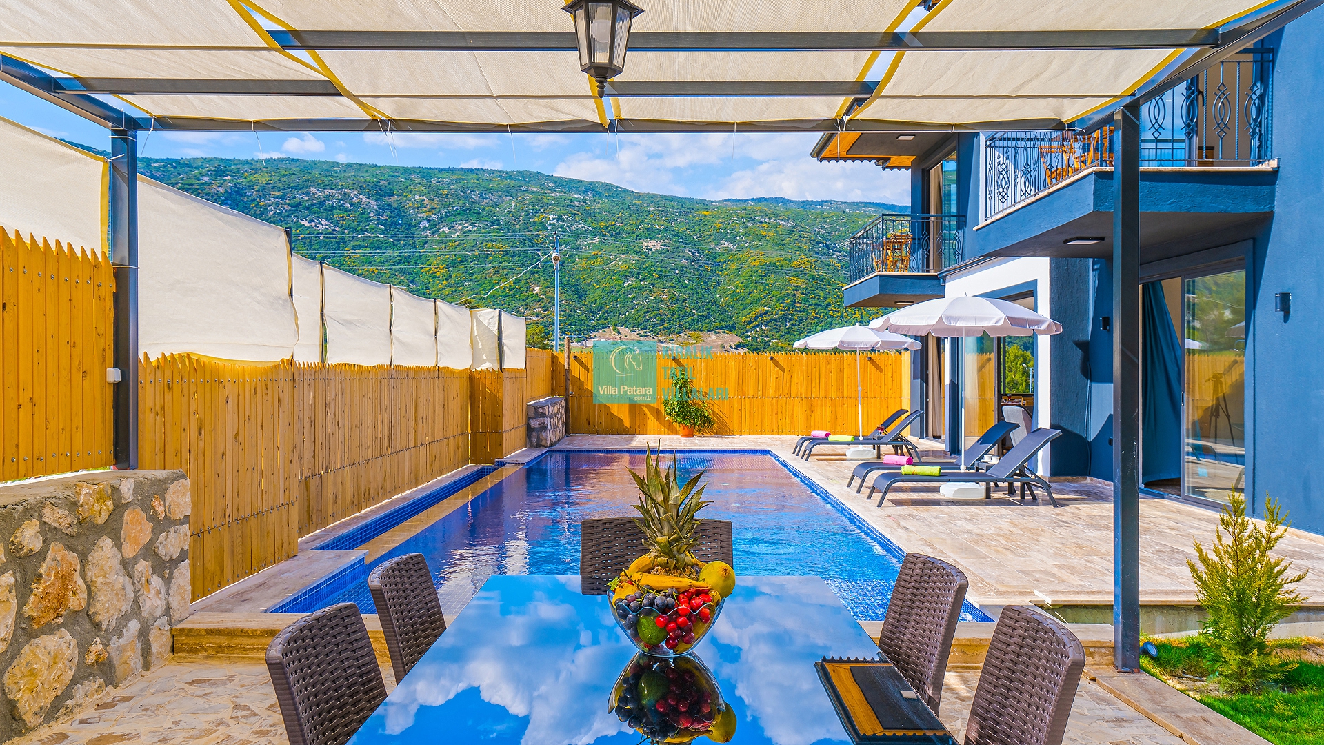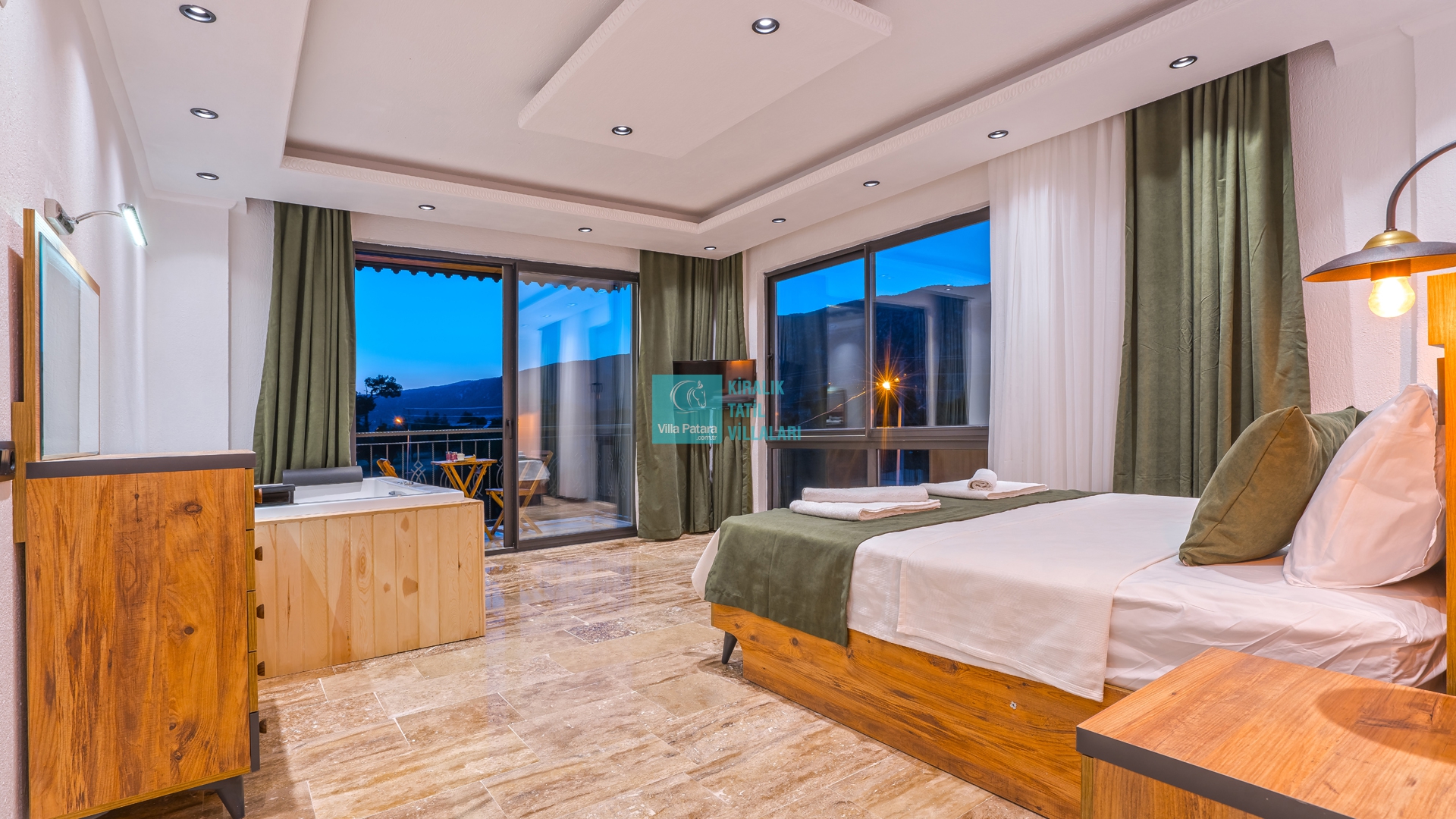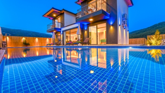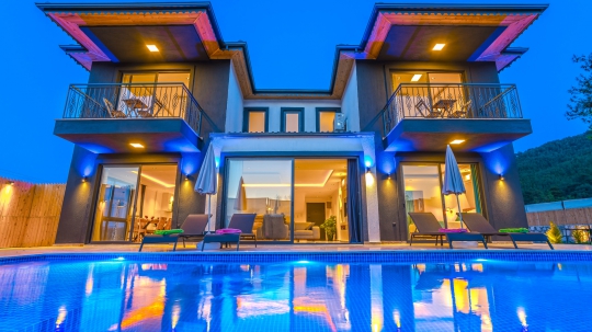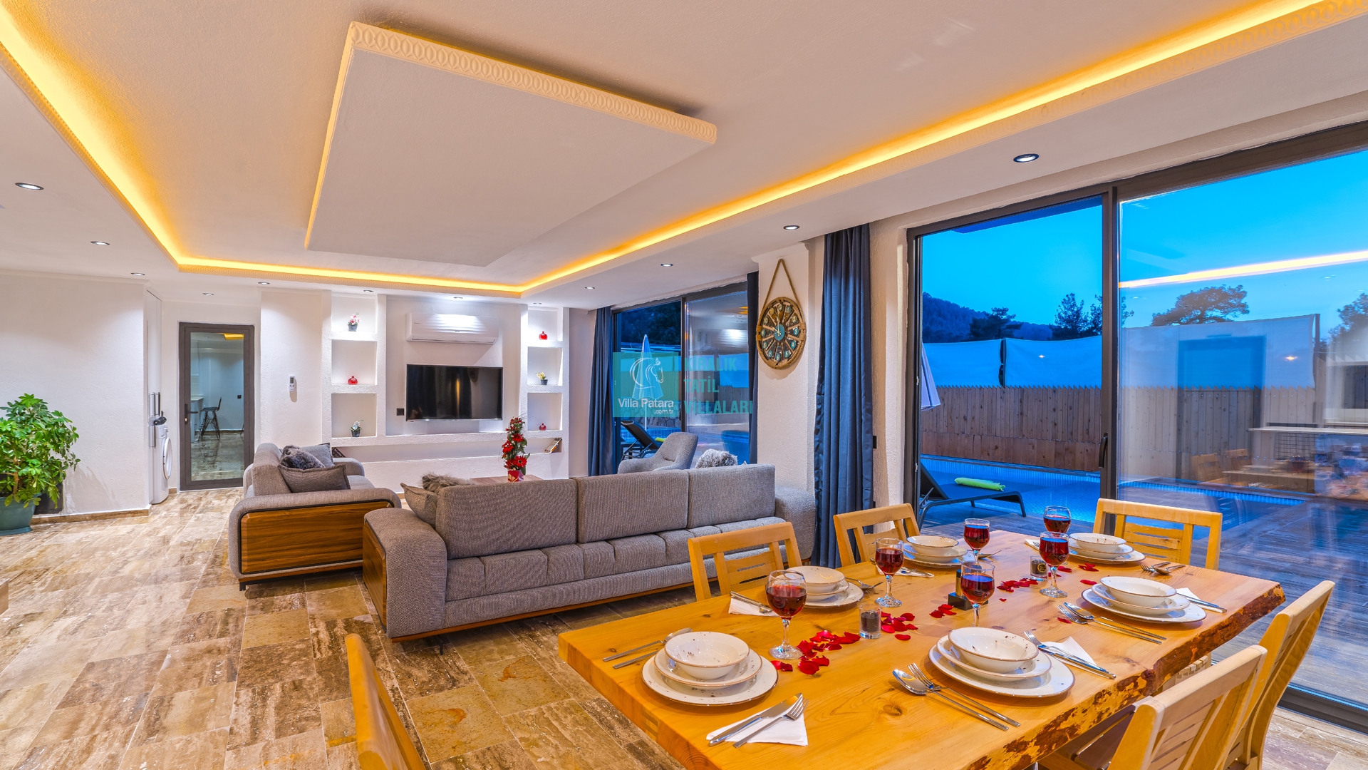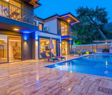 Villa Aurora Kalkan Sarıbelen bölgesinde yer almakta olan villamız 5 kişilik kapasiteye sahiptir. Çekirdek aileler ve balayı çiftleri için ideal olarak tasarlanmıştır. 3 yatak odası bulunan villamızın her odasında ebeveyn banyosu bulunmaktadır. Yazlık villamızın havuz terası dışarıdan görünmemektedir ve muhafazakar villa tercihinizde bu villamızı değerlendirmenizi tavsiye ederiz. Villamız 2022 yılı yeni yapı olan villamız, son derece rahat ve konforlu mobilyalarla dizayn edilmiştir Jakuzili villa muhafazakar villamızda sizi konuk etmekten mutluluk duyarız.