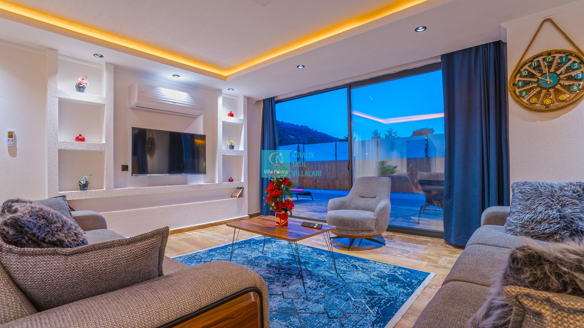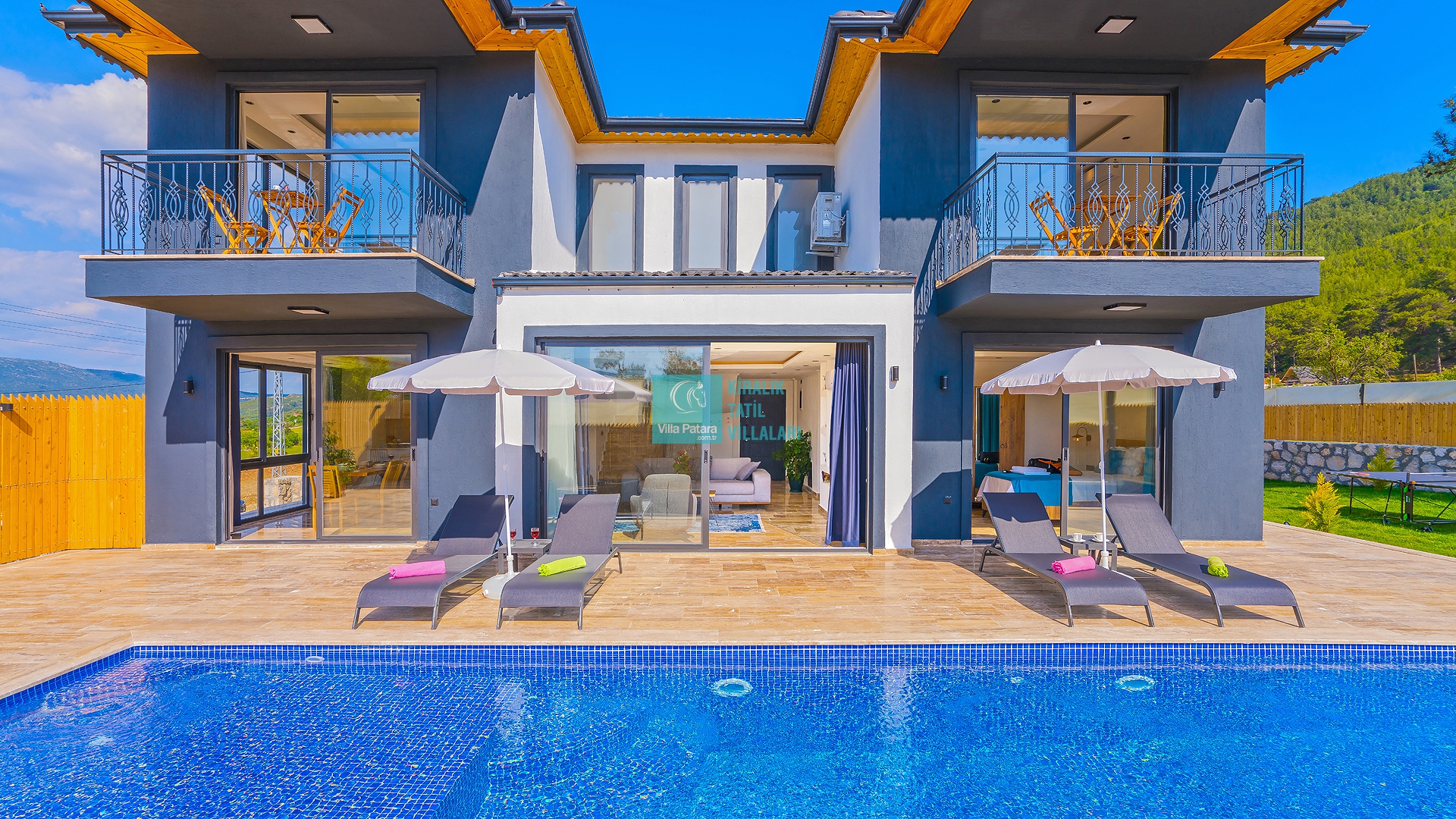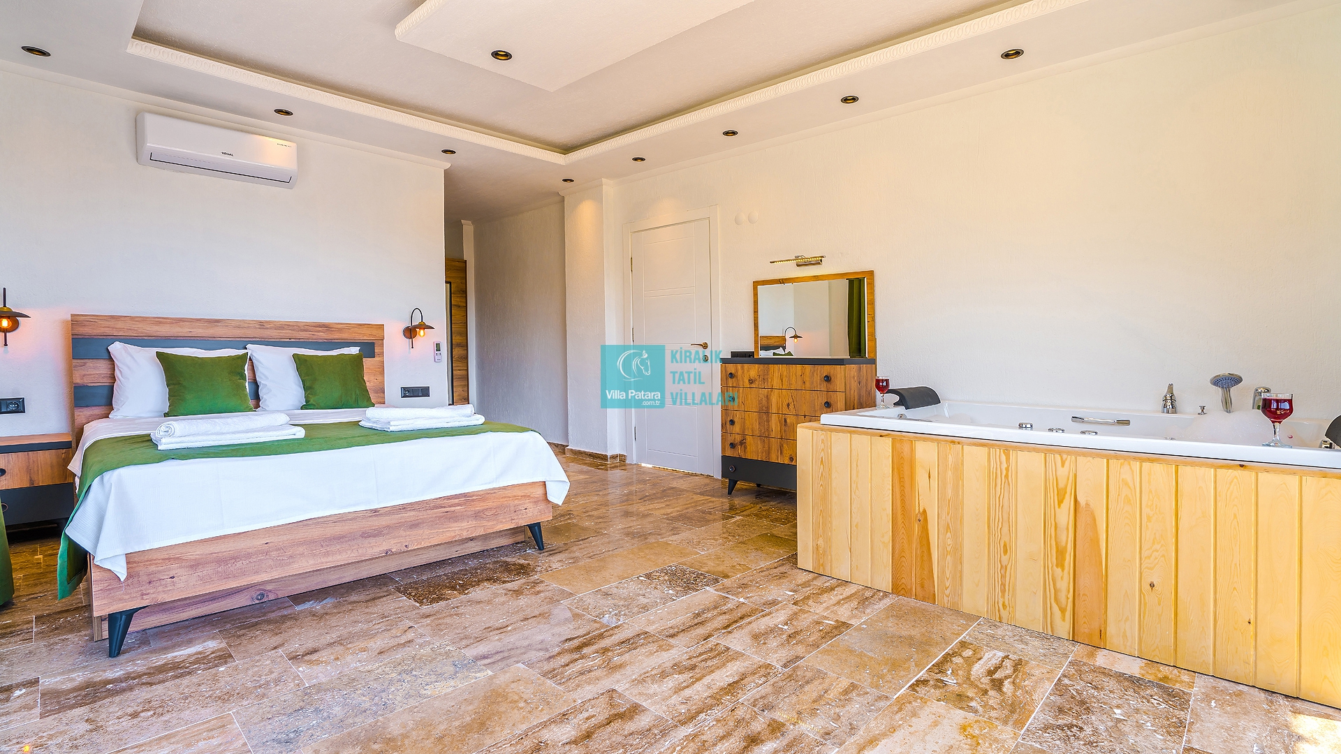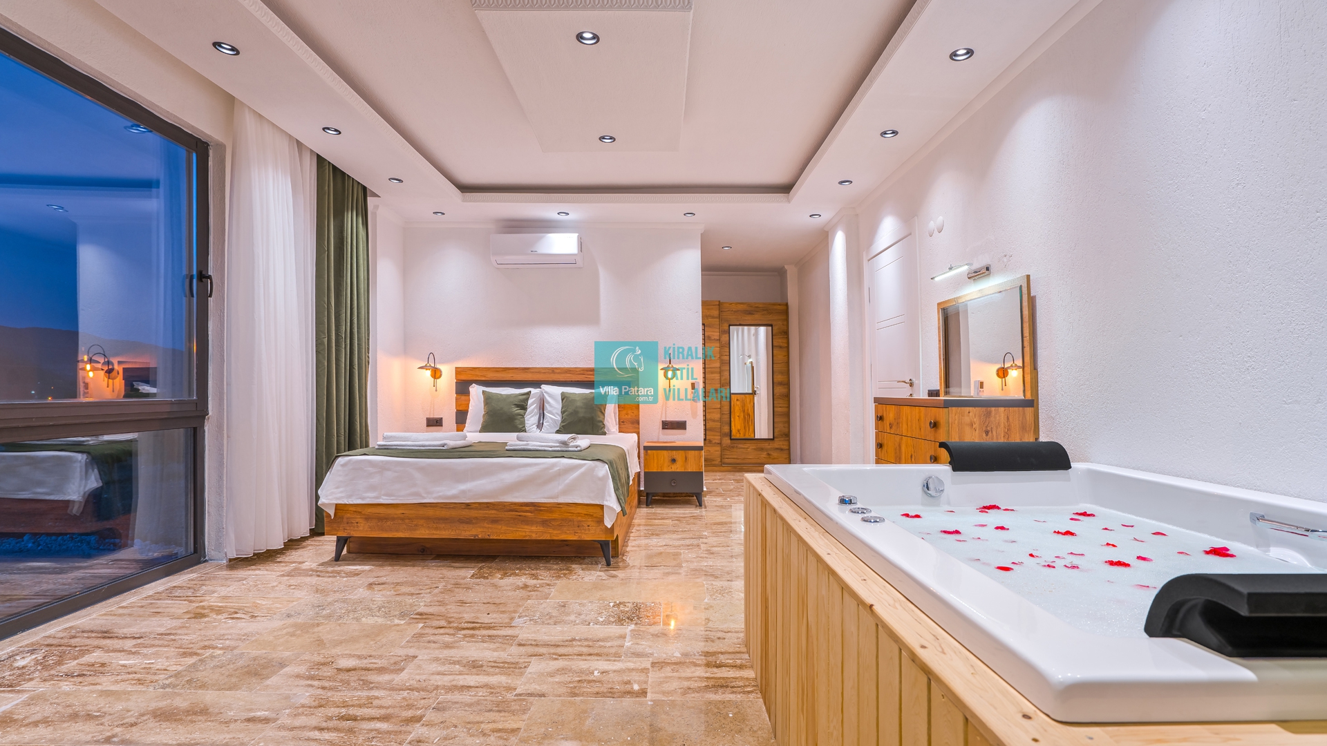 Villa Aurora Kalkan Sarıbelen bölgesinde yer almakta olan villamız 5 kişilik kapasiteye sahiptir. Çekirdek aileler ve balayı çiftleri için ideal olarak tasarlanmıştır. 3 yatak odası bulunan villamızın her odasında ebeveyn banyosu bulunmaktadır. Yazlık villamızın havuz terası dışarıdan görünmemektedir ve muhafazakar villa tercihinizde bu villamızı değerlendirmenizi tavsiye ederiz. Villamız 2022 yılı yeni yapı olan villamız, son derece rahat ve konforlu mobilyalarla dizayn edilmiştir Jakuzili villa muhafazakar villamızda sizi konuk etmekten mutluluk duyarız.