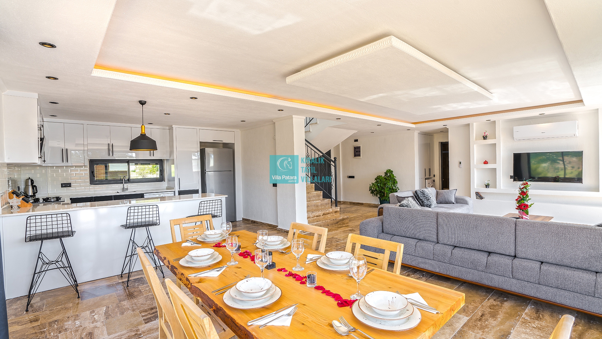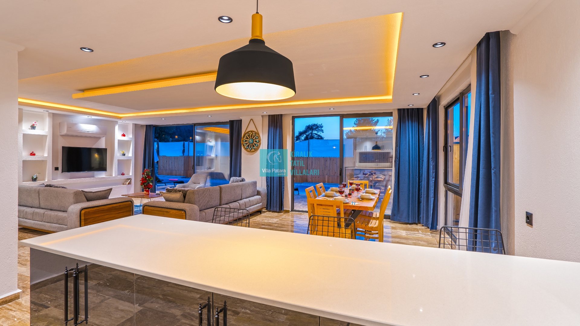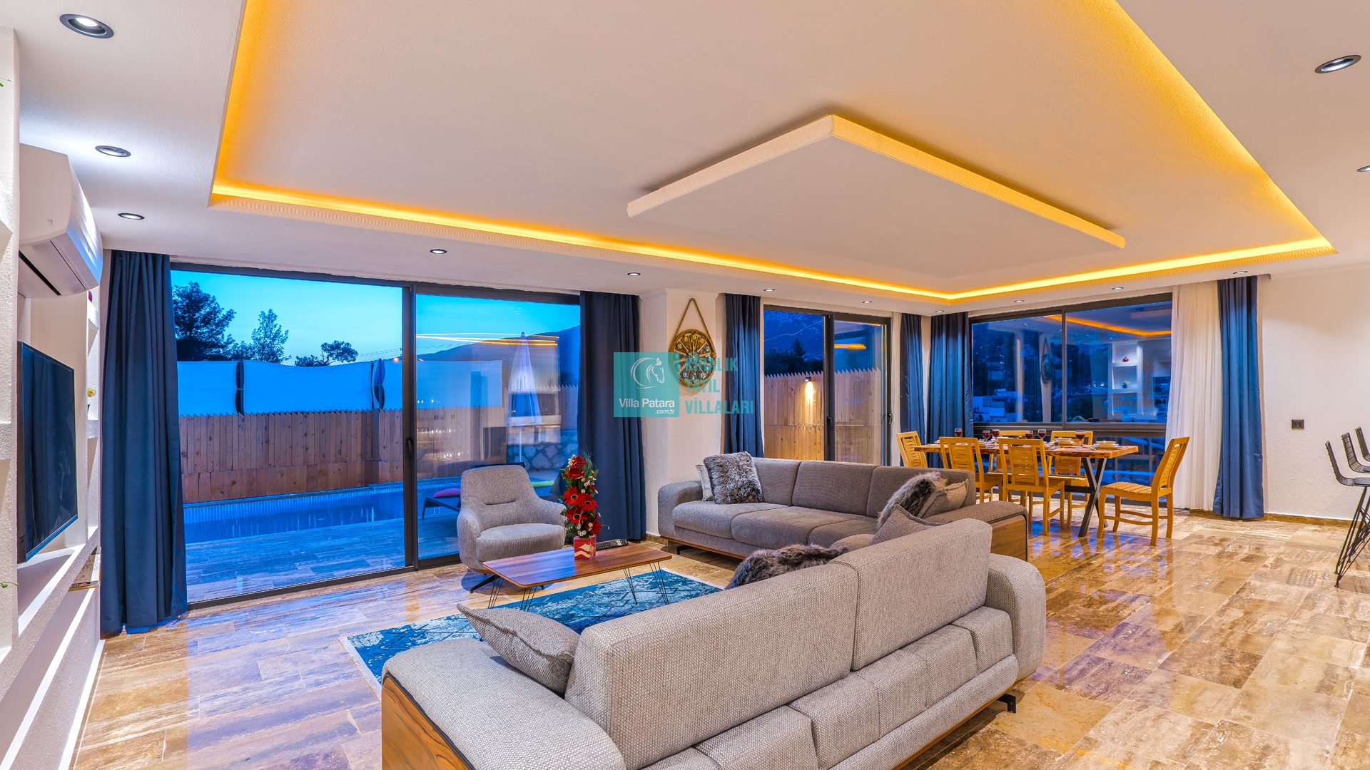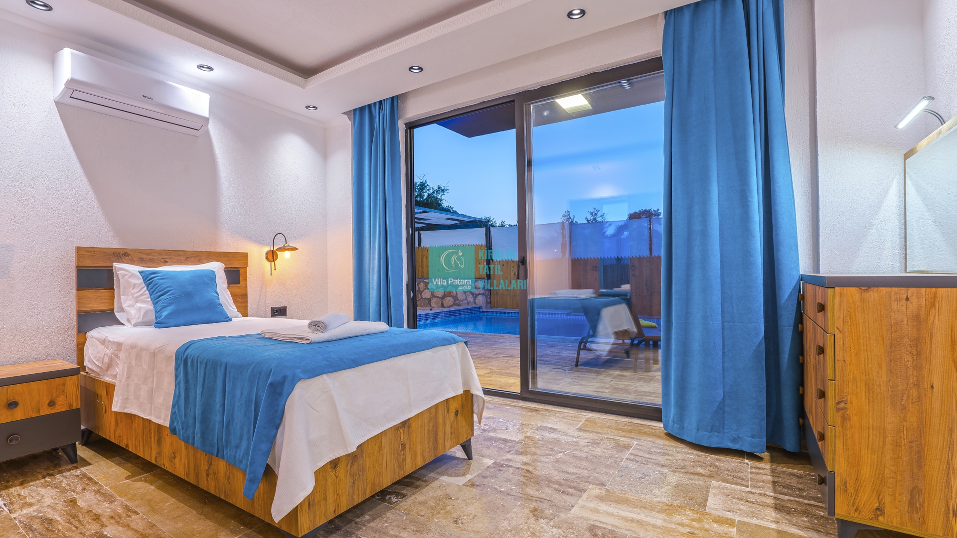 Villa Aurora Kalkan Sarıbelen bölgesinde yer almakta olan villamız 5 kişilik kapasiteye sahiptir. Çekirdek aileler ve balayı çiftleri için ideal olarak tasarlanmıştır. 3 yatak odası bulunan villamızın her odasında ebeveyn banyosu bulunmaktadır. Yazlık villamızın havuz terası dışarıdan görünmemektedir ve muhafazakar villa tercihinizde bu villamızı değerlendirmenizi tavsiye ederiz. Villamız 2022 yılı yeni yapı olan villamız, son derece rahat ve konforlu mobilyalarla dizayn edilmiştir Jakuzili villa muhafazakar villamızda sizi konuk etmekten mutluluk duyarız.