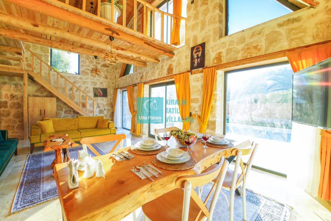 Konforlu eşyalarla döşenmiş olan lüks villa keyifli bir tatil imkanı sunmaktadır. Muhteşem doğa manzarasıyla ,kaliteli eşyalarıyla,