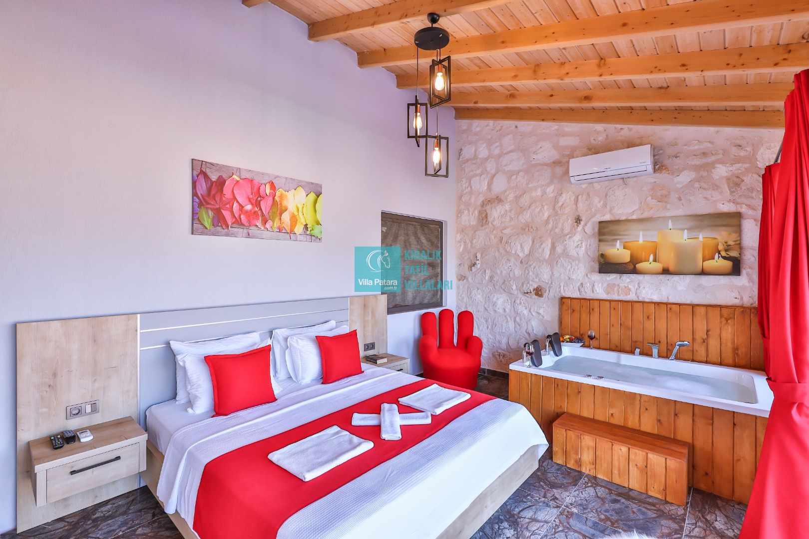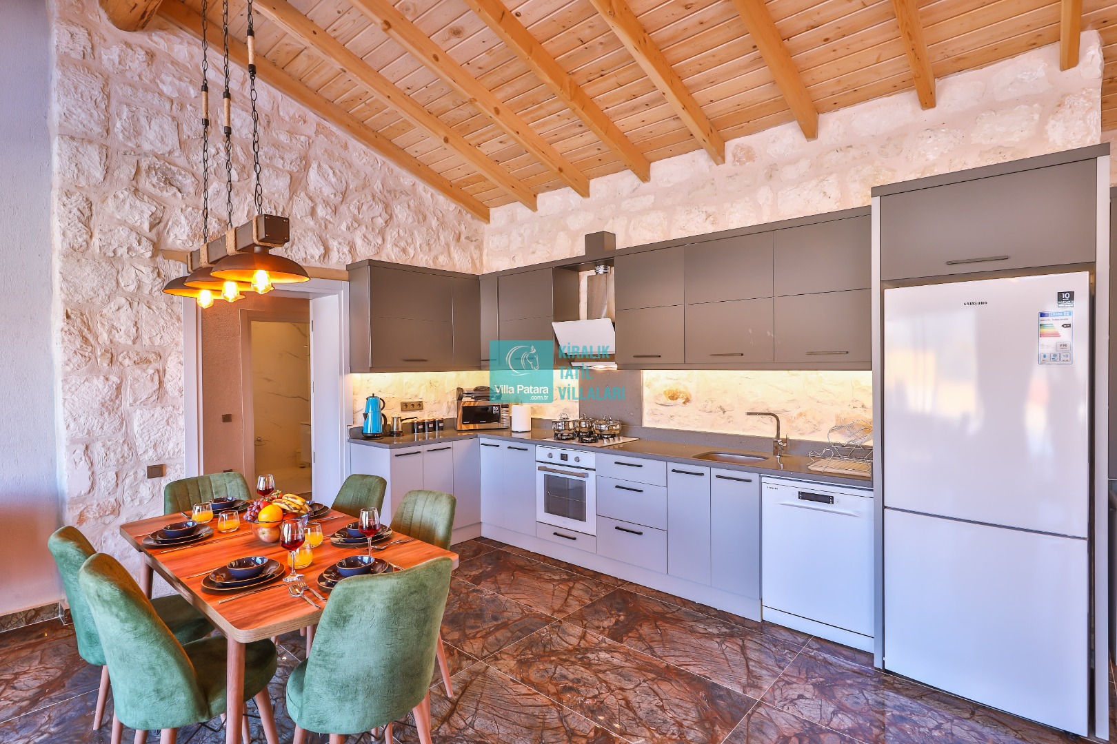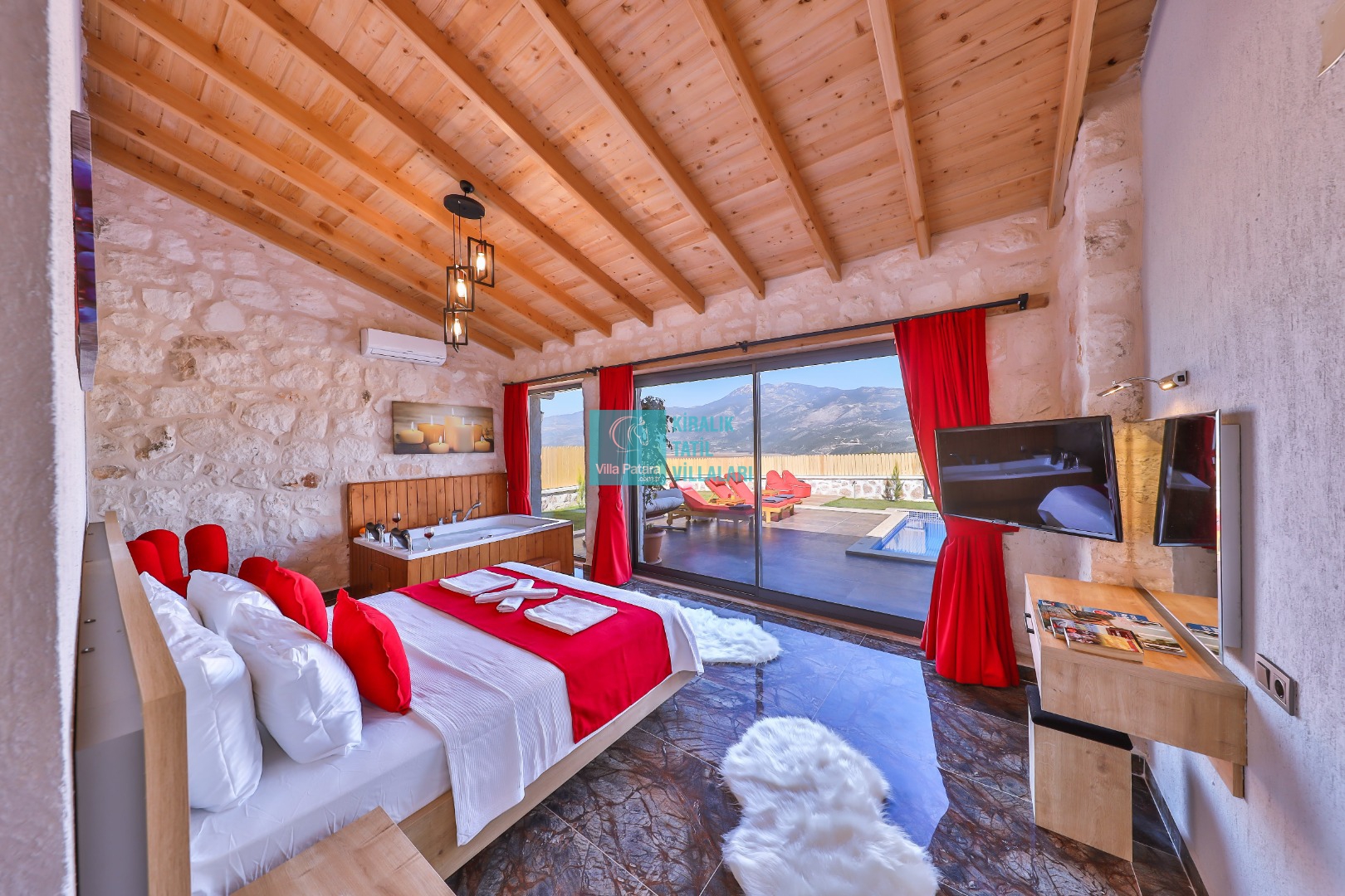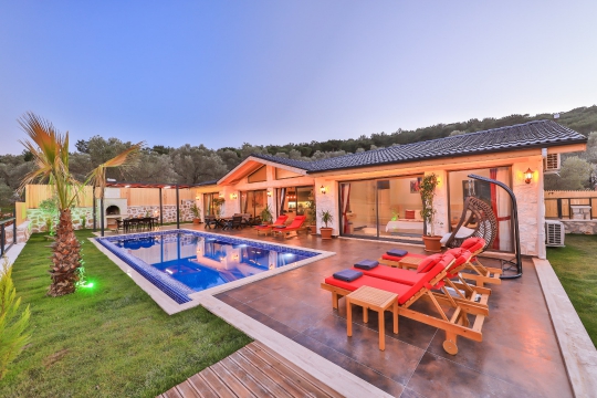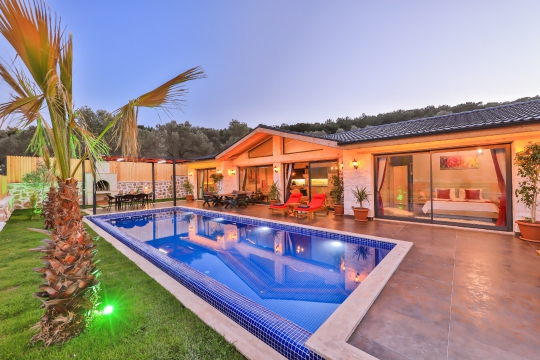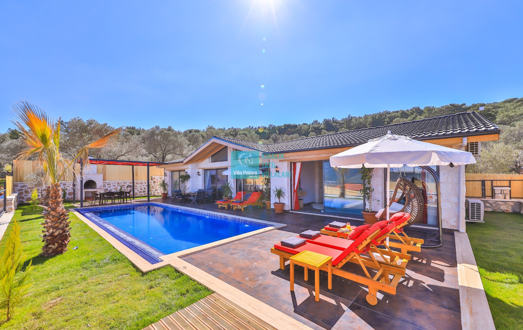 Villa Aven 1, Kalkan Yeşilköy mevkiinde 2 yatak odalı 5 kişi kapasiteli geniş bahçe alanına sahip size özel kiralık villamızdır. Villamızın özenli lüks dekoru ve modern tasarımı sayesinde keyifli günler geçirecek ve siz değerli misafirlerimiz tatilinizin hiç bitmemesini isteyeceksiniz. Villamızın modern mutfağı, eksiksiz araç-gereçli ve konforlu eşyaları sayesinde kendinizi evinizdeymiş gibi hissedebilecek ve rahat bir tatil geçirme imkanı bulabileceksiniz. Doğa ile iç içe olan villamız merkeze 8 km mesafede yer almaktadır. Müstakil özel havuzlu villamızın havuz terası yabancı gözlerden uzak, muhafazakar kiralık villa seçeneklerimiz arasındadır.