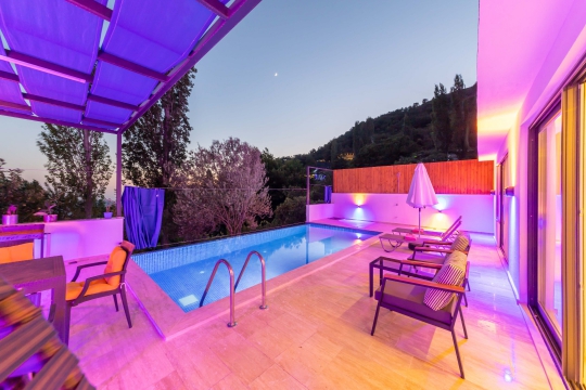 Kalkan İslamlar Mevkiinde bulunan sessizliğin, huzurun hakim olduğu bir villada tatil isteyen çiftler için oldukça uygun bir seçenektir. Muhafazakar villalar ve Balayı Vilları kategorisinde yer alan villamız, 1 yatak odası ile 2 kişilik konaklama kapasitesine sahiptir. Havuzu korunaklı ve bahçesi dışarıdan görünmeyen villamız mahremiyete önem veren Ailelerimiz için huzur dolu bir tatil fırsatı sunuyor. Ayrıca Villamızın yatak odasında'da 2 kişilik jakuzi konforuda yer almaktadır.