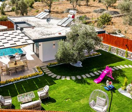 Genel Notlar : Doğa içerisinde yer alan villalarımızın tamamı böcek, sinek, kelebek, haşereler vb. için düzenli olarak ilaçlanmaktadır. Doğa içerisinde konuma sahip olan villalarda, merkezde yer alan villalara nazaran böcek, sinek, kelebek, haşereler vb. çıkma ihtimali daha yüksektir. Bu not sadece bu villa ile ilgili değildir. Doğa içerisinde konuma sahip olan tüm villaların bilgilerinde yazılmaktadır.