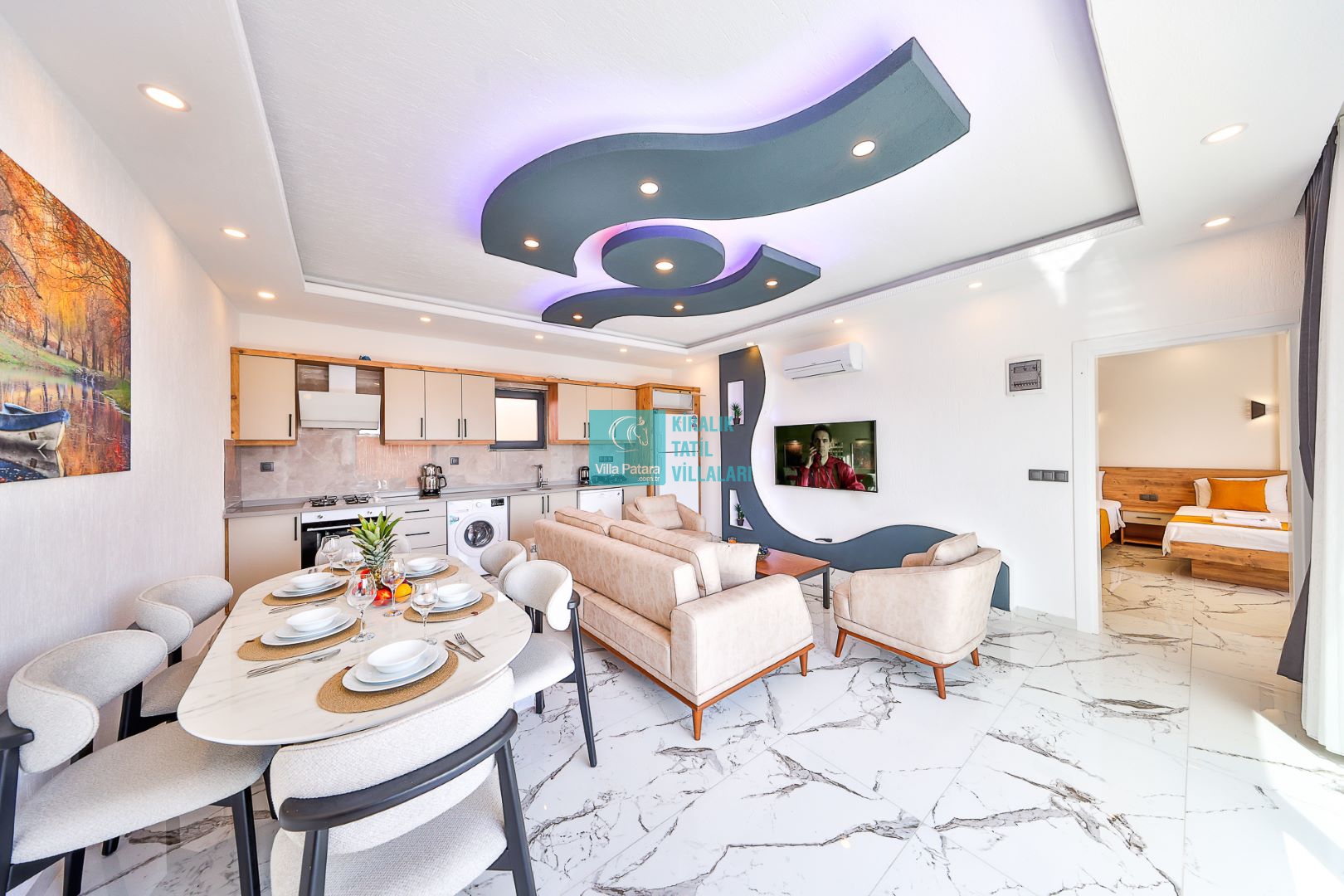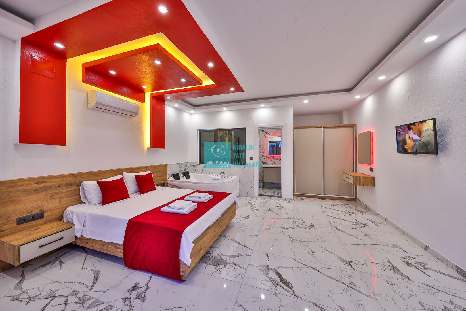 Villa Aygül 1, Kalkan Çavdır mevkiinde konumlu 2 yatak odalı 5 kişi konaklama kapasitesine sahip kiralık villadır. Doğa içerisinde konumlu villanın havuz teras alanı korunaklıdır. Ebeveyn yatak odasında çift kişilik jakuzi bulunan villada minik yavrularınız da düşünülmüştür. Villada sevdikleriniz ve aileniz ile birlikte muhteşem bir tatil deneyimi yaşayacaksınız.