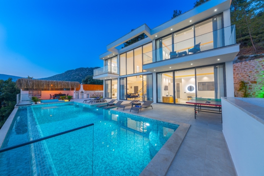 Villa Azure Üzümlü, Kalkan'ın eşsiz doğasında, özel yüzme havuzu ve geniş bahçesiyle huzur veren bir kaçış sunuyor. Modern tasarımı, konforlu odaları ve eğlence olanaklarıyla, sevdiklerinizle unutulmaz anlar yaşayacağınız bir tatil vaat ediyor. Doğa ile iç içe, lüks bir konaklama arayanlar için mükemmel bir seçim.