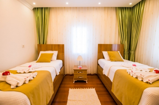 3. Yatak Odası : 2 adet tek kişilik yatak, klima, makyaj masası, komodin, elbise dolabı, banyo ve tuvalet bulunmaktadır.