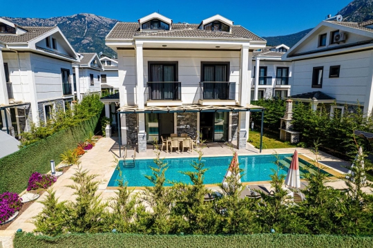 Fethiye'nin gözde tatil bölgesi Ölüdeniz-Hisarönü'nde konumlanan Villa Bahama, modern mimarisi, 21 m²'lik özel havuzu ve merkezi konumuyla, kalabalık aileler için tasarlanmış premium bir villa deneyimi sunuyor. 4 yatak odası ve 3 banyosuyla toplam 8 kişiye kadar konaklama imkanı sunan villada modern konfor ve lüks detaylar ön planda tutulmuştur. Klimalar sayesinde her mevsim rahat bir konaklama deneyimi yaşayabilirsiniz.