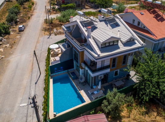Toplu ulaşım araçlarına, market ve restoranlara yürüyüş mesafesindeki villamız Çalış Plajına 2 km mesafededir.